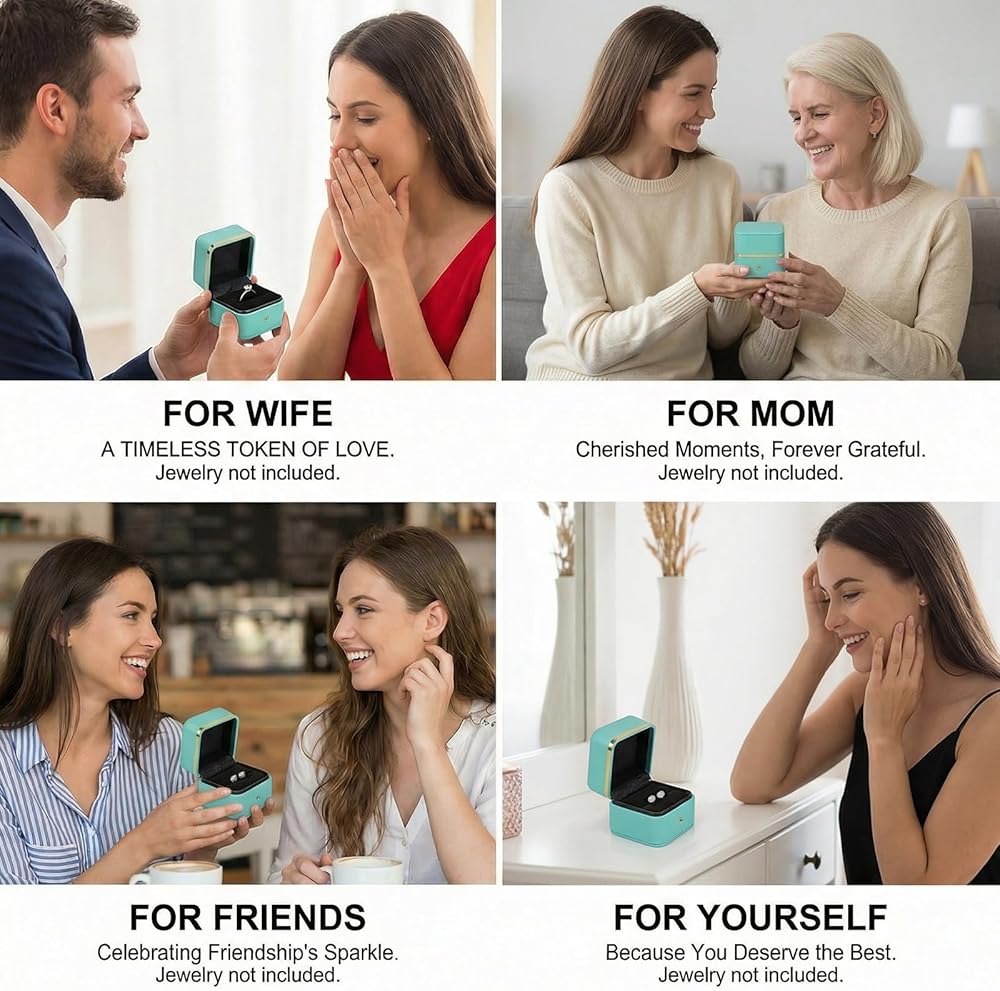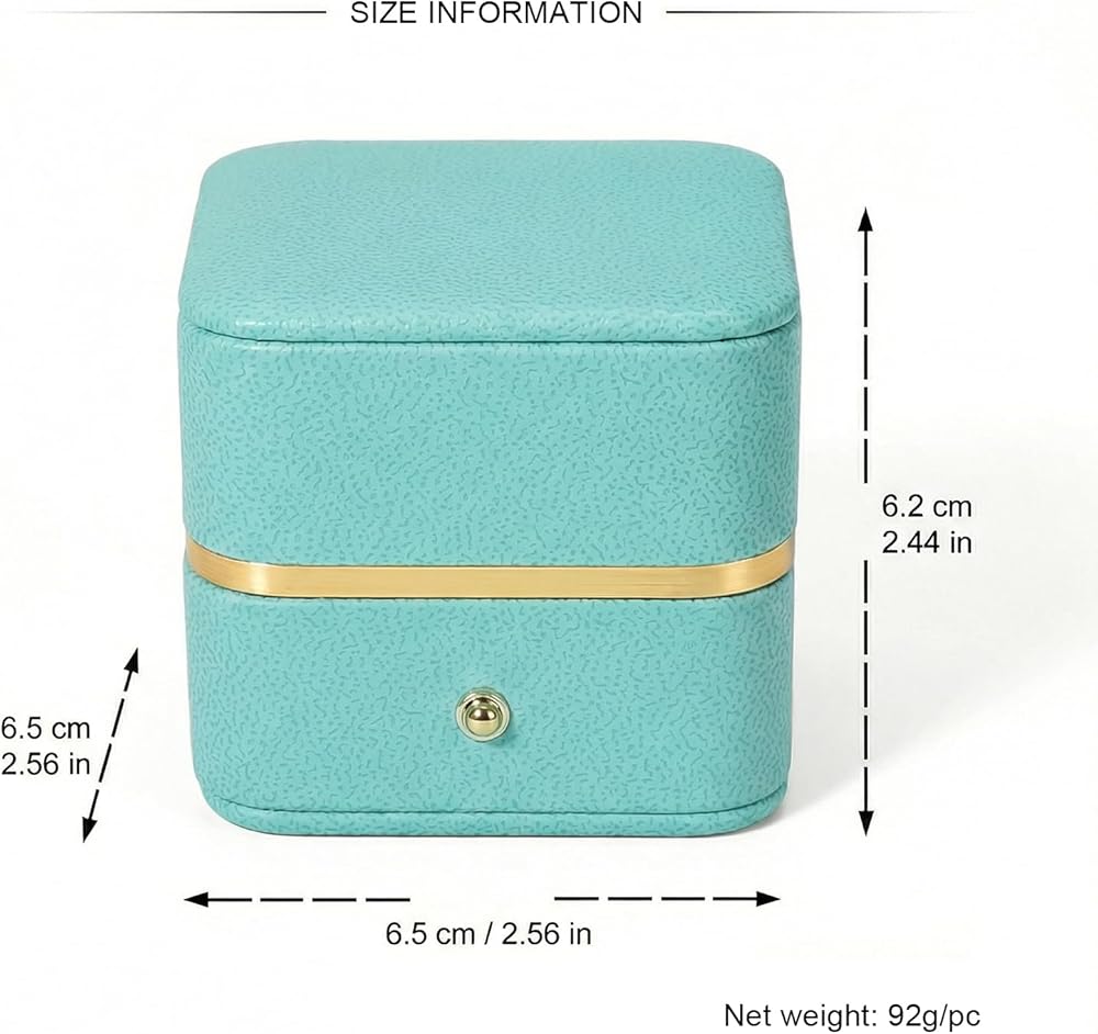 【Perfect Surprise Companion - Compact & Portable】: Designed for the perfect surprise moment, this elegant ring/earrings box measures 2.56" L x 2.56" W x 2.44" H. Its compact size allows you to discreetly carry it in your pocket or purse, ensuring you're always ready for a spontaneous proposal, anniversary, or gift-giving occasion.