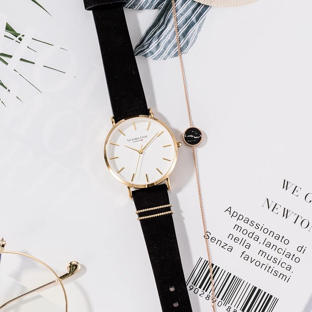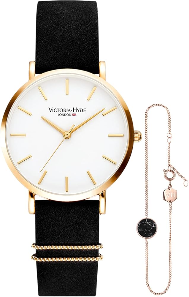 VICTORIA HYDE Women Watches Adjustable Bracelet Set Analog Quartz Detachable Genuine Leather Strap Ladies Wristwatch Gifts for Her Black White