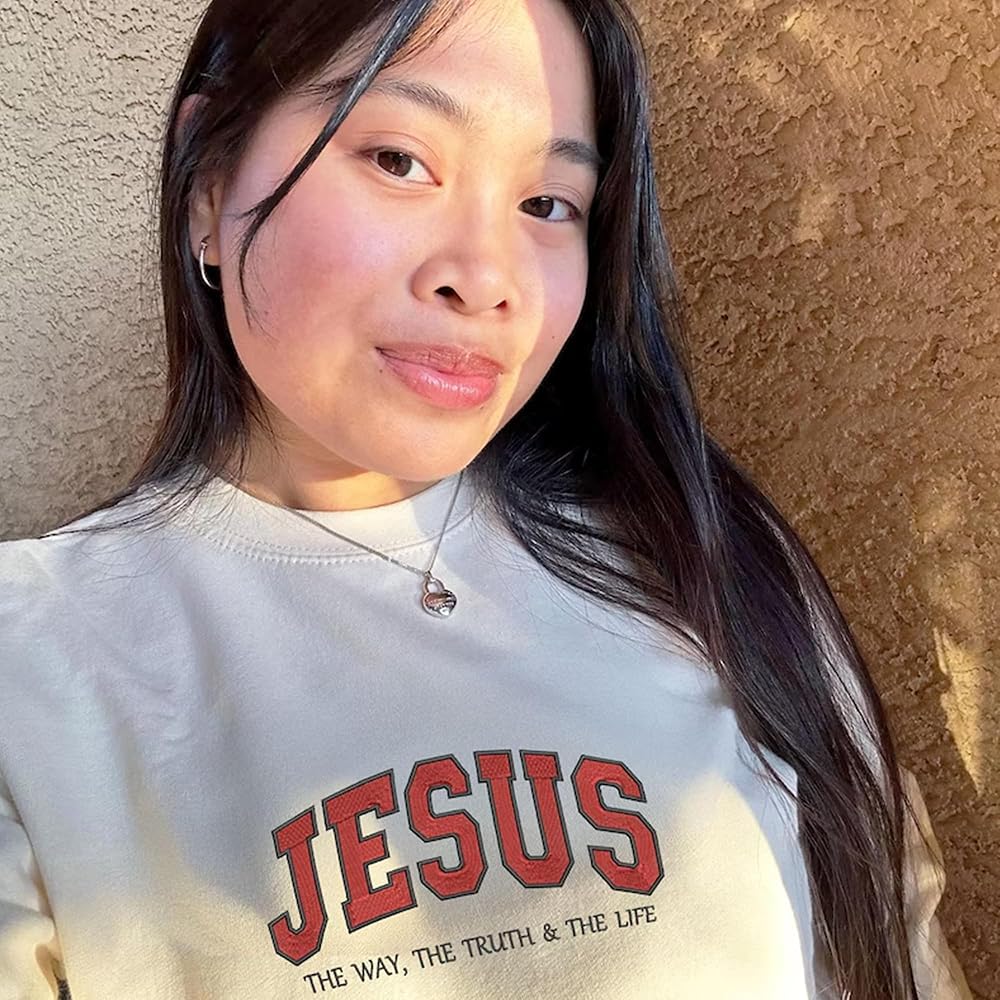 Carry a bold statement of faith with this embroidered sweatshirt featuring the powerful words “Jesus – The Way, The Truth & The Life” in varsity style lettering. A cross icon stitched on the sleeve adds extra meaning, making it more than just apparel—it's a testimony you can wear. The cozy, soft fleece fabric ensures all-day comfort while the classic unisex fit makes it versatile for everyday wear, from church gatherings to casual outings. This sweatshirt is not only a reminder of your faith but also a thoughtful way to share encouragement with others. Perfect as a Christian gift for birthdays, Christmas, youth retreats, or simply to uplift someone's spirit. Designed to blend timeless style with an inspiring message, it's a faith-based essential that you'll reach for season after season. Expertly embroidered with love in the USA and shipped quickly for any special occasion.