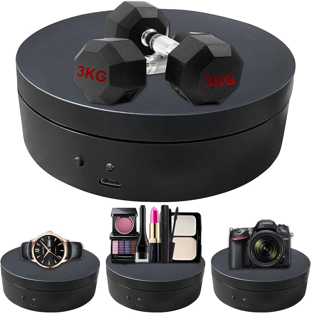 Smooth Rotating: Good bearing motor, rotate smoothly. This rotating display stand motorized runs quietly and won't affect your video shooting. Easy to shoot 360-degree panoramic view.