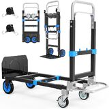 【3-in-1 Convertible Design & Heavy Duty Performance】Easily switch between a 2-wheel upright dolly and 4-wheel platform truck in seconds—no tools or pins required. Built with industrial-grade thickened steel, our hand truck supports up to 500 lbs in 4-wheel mode and 220 lbs in 2-wheel mode, offering versatile strength for moving, delivery, or warehouse use
