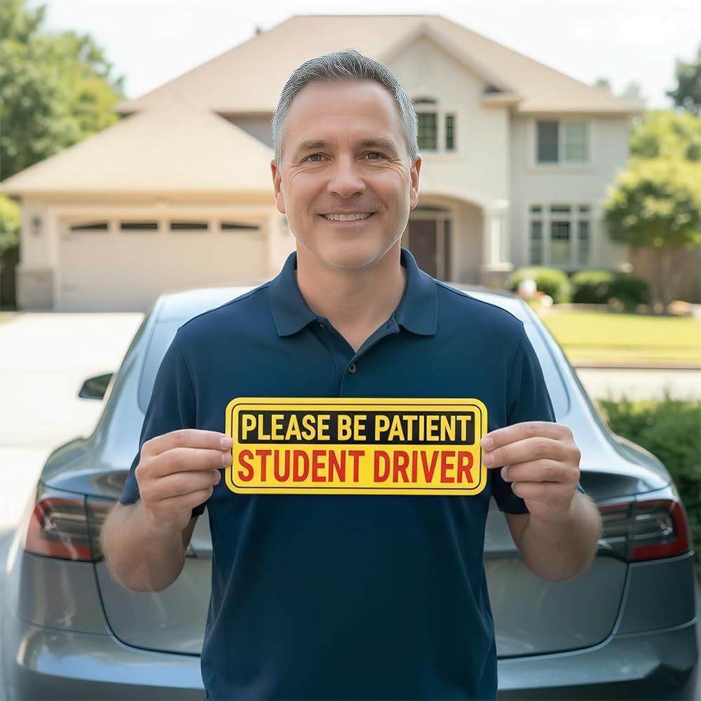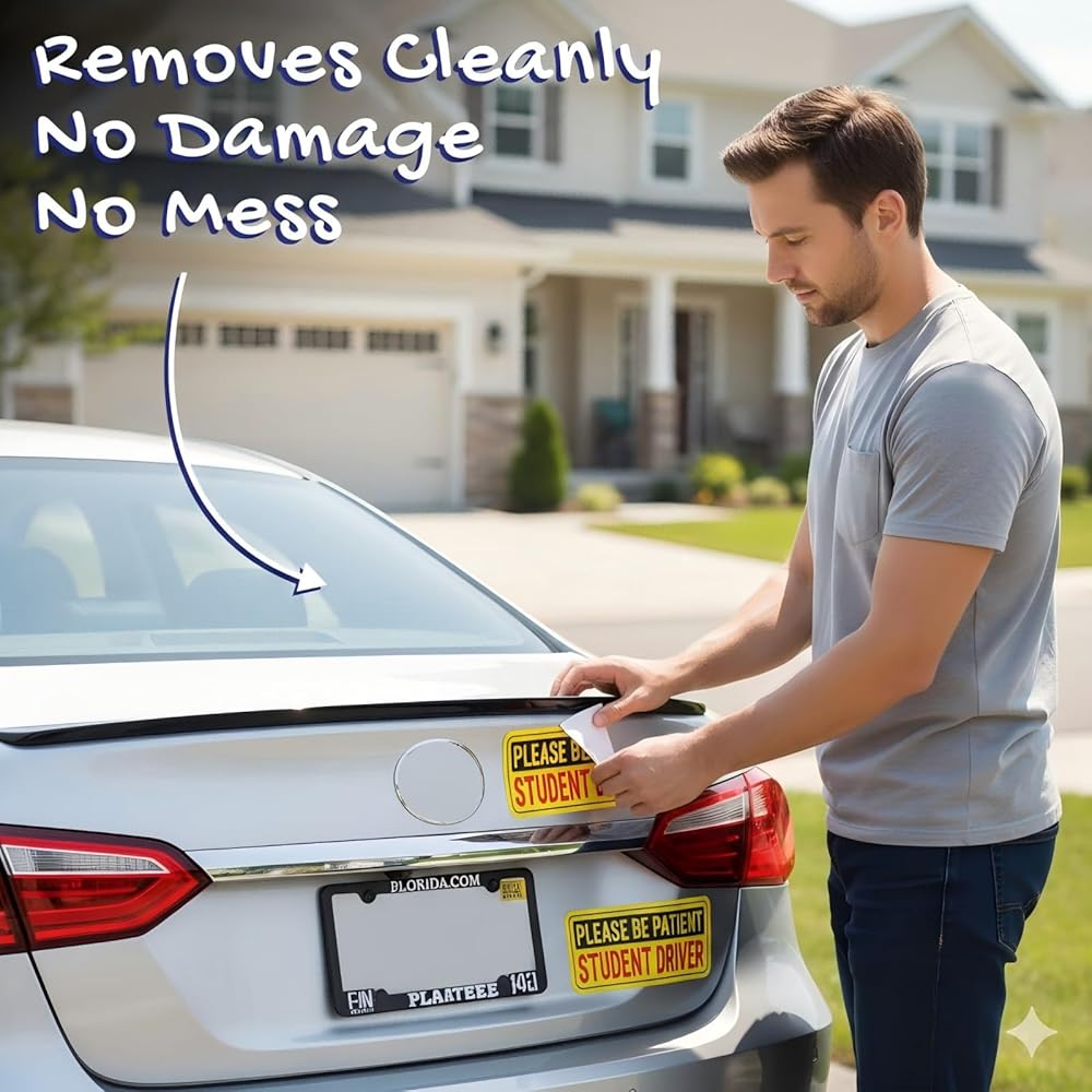• 【Universal Non-Magnetic Application】Safety knows no bounds with our student driver sticker for car. Unlike a traditional student driver magnet for car that only sticks to steel, our advanced student driver sign works on all smooth surfaces—including plastic bumpers, aluminum body panels, and glass. It is the perfect new driver sticker for modern vehicles like Teslas or trucks where a student driver car magnet simply won't stick.