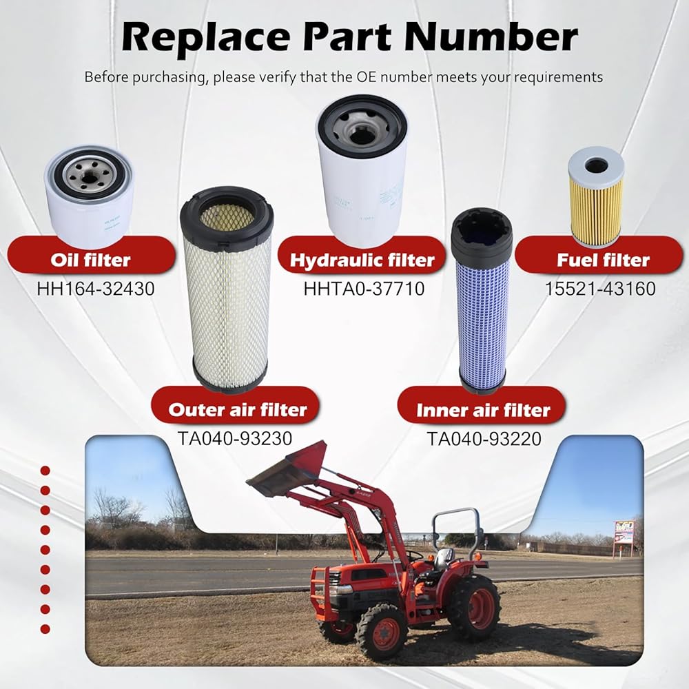 【Replace Part Number】Outer air filter: TA040-93230; Inner air filter: TA040-93220; Oil filter: HH164-32430; Hydraulic filter: HHTA0-37710; Fuel filter: 15521-43160