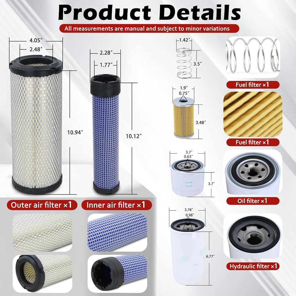 【Included Component】Outer air filter ×1; Inner air filter ×1; Oil filter ×1; Hydraulic filter ×1; Fuel filter ×1