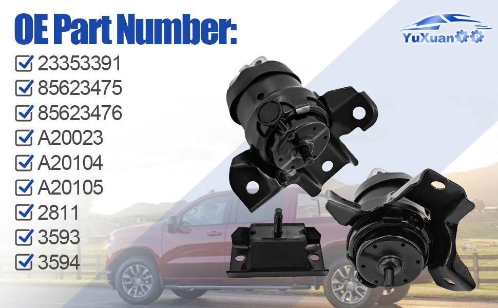 [High Quality]: The 23353391+85623476+85623475 front engine mounts kit is made of high-quality materials, which is strong and durable, not easy to damage, has strong impact resistance, stable performance and long service life, bringing you a good use experience.