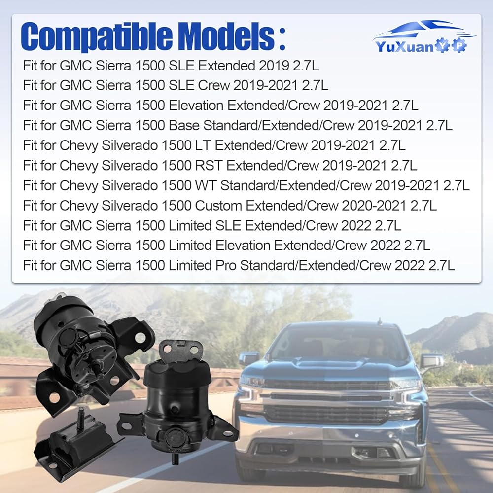 [Compatible Models]: Fits for 2019 GMC Sierra 1500 SLE Extended 2.7L, 2019-2021 GMC Sierra 1500 SLE Crew 2.7L & Elevation Extended/Crew 2.7L & Base Standard/Extended/Crew 2.7L; 2019-2021 Chevy Silverado 1500 LT/RST Extended/Crew 2.7L & WT Standard/Extended/Crew 2.7L, 2020-2021 Chevy Silverado 1500 Custom Extended/Crew 2.7L; 2022 GMC Sierra 1500 Limited SLE/Elevation Extended/Crew 2.7L & Pro Standard/Extended/Crew 2.7L.