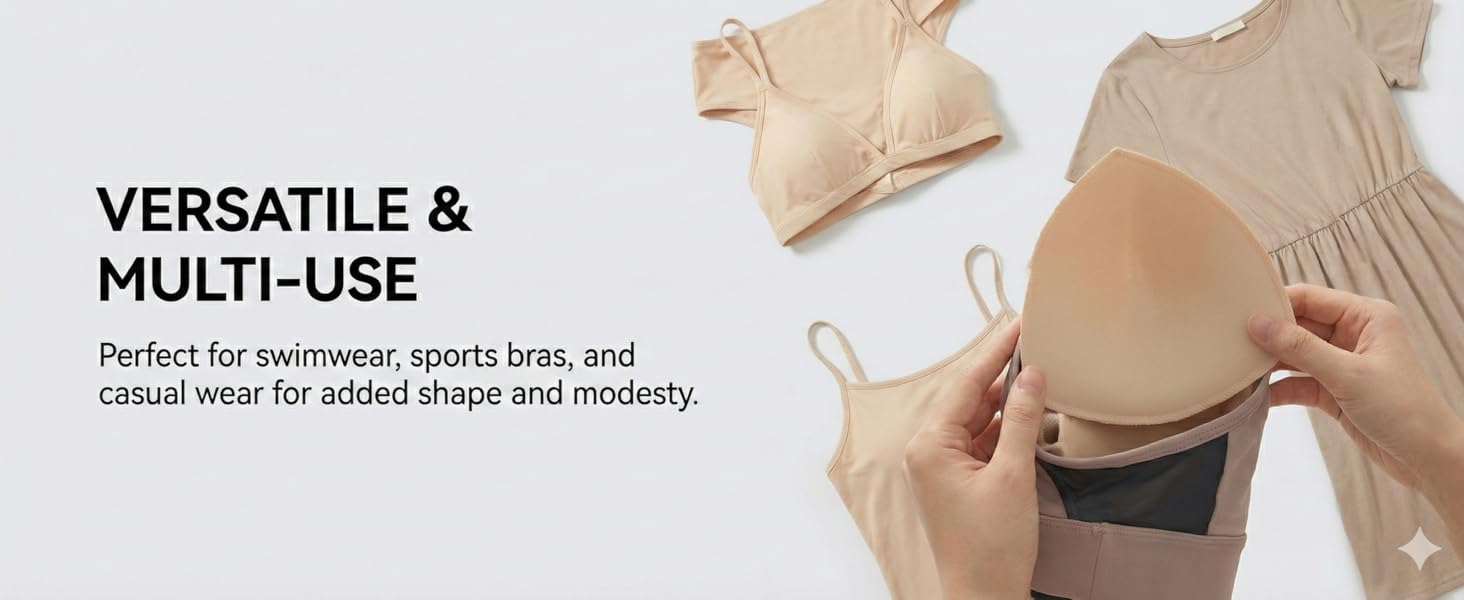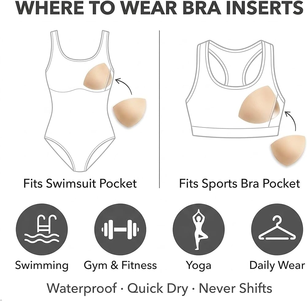 Natural Push-Up & Bust Enhancer: Enhance your silhouette with a natural, seamless look. These ergonomically shaped inserts provide a subtle yet noticeable lift and fuller appearance, perfectly matching triangle bikinis, one-piece swimsuits, and sports bras. Confidence-boosting coverage that feels as good as it looks.