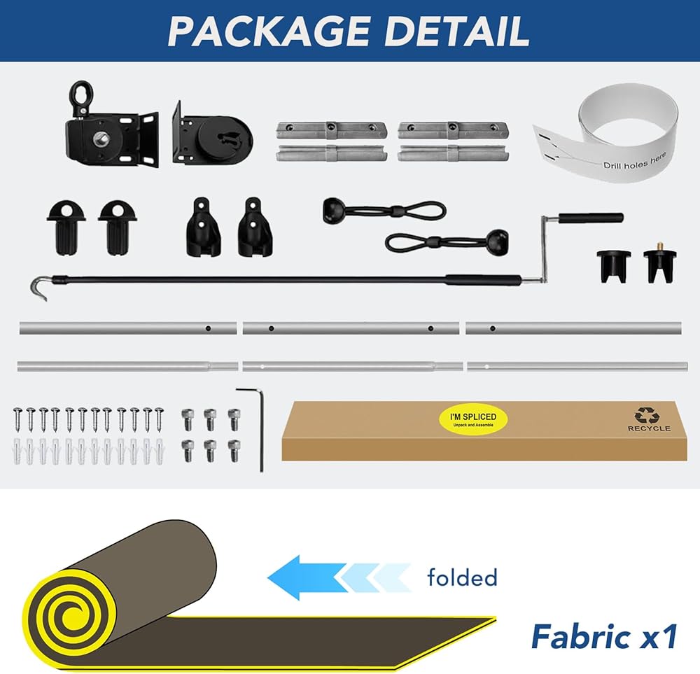 Note on Packaging: The outer packaging dimensions will be smaller than the finished roller blind size. This is due to the two-piece splicing design of our poles. Rest assured that the fabric is a single, seamless piece with no joints. We use this splicing design not only to make transportation easier, but also to effectively prevent pole sagging during use
