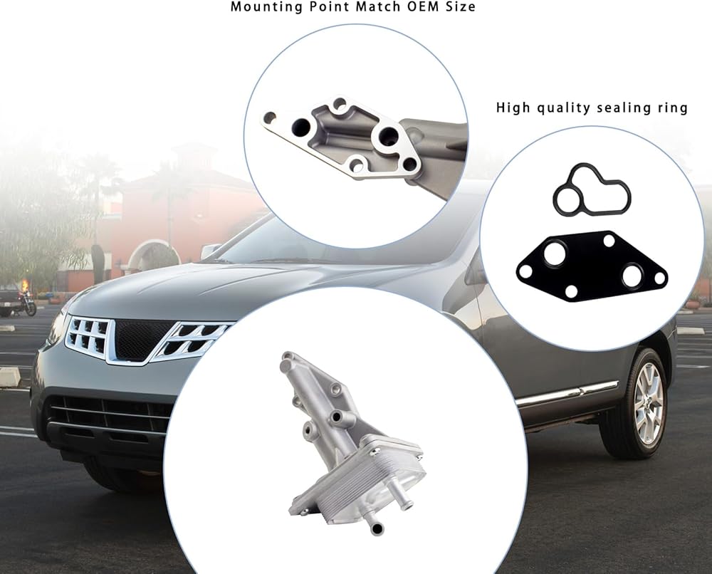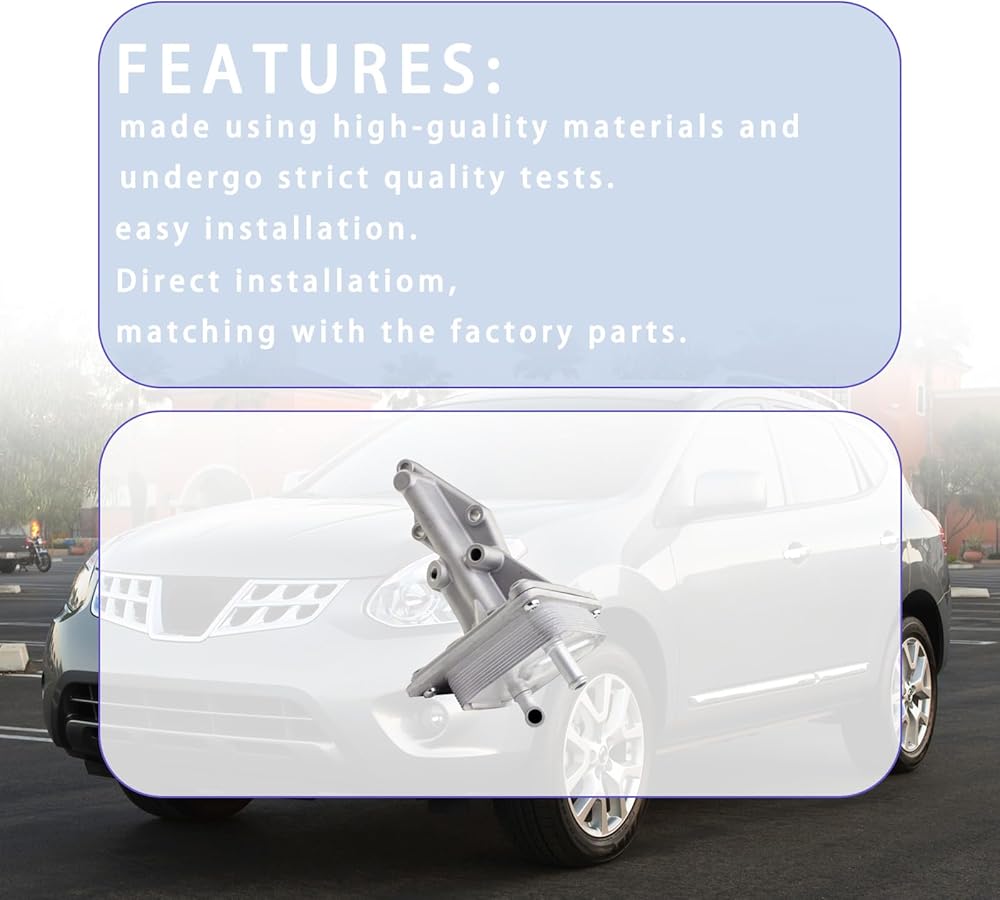When the engine runs under a high load, the heat generated by friction can cause the oil to heat up. If the oil cooler fails to cool down in time, the oil will not be able to lubricate well and will slowly cause damage to the engine. It is recommended to replace oil cooler in time. Our oil cooler meets or exceeds the oem standard and has been tested in the factory. It perfectly matches the original car and can be installed directly.