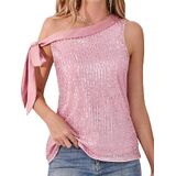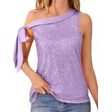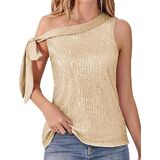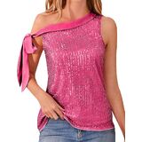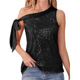 This eye-catching sequin shirt features a bold asymmetrical design with a single shoulder strap adorned by a bow crafted from matching sequined fabric.