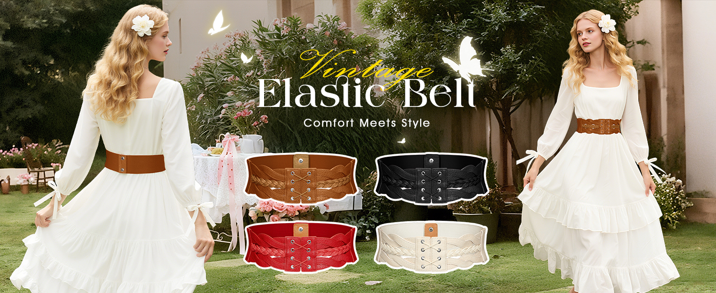 Wide Elastic Belts: This women's wide belt comes with a 3-inch widened design, and the back waist features a specially added high-elastic woven band.the stretchy adjustment ensures a comfortable, non-constricting fit, easily handling the needs of various body types.
