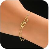 925 Sterling Silver Cat Dog Puppy Pet Paw Print Bracelet for Women Dainty 14k Gold Plated Hollow Heart Link Bracelet Cute Animal Paw Charm Chain Jewelry Birthday Gifts to Daughter