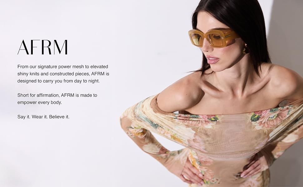 At AFRM, we believe in the transformative power of affirmations. More than just a clothing brand, AFRM—short for Affirmation—is a celebration of self-love, confidence, and inner strength. Every piece is designed to empower individuality and inspire beauty from within. Rooted in our philosophy of self-expression, AFRM blends bold silhouettes with intention, offering fashion that reflects who you are and who you're becoming. The essential Juniper Midi Dress features a body-hugging silhouette with clean lines and a sleek mock neck. Crafted in soft knit crepe fabrication, its effortless fit makes this dress a closet staple you'll reach for season after season.