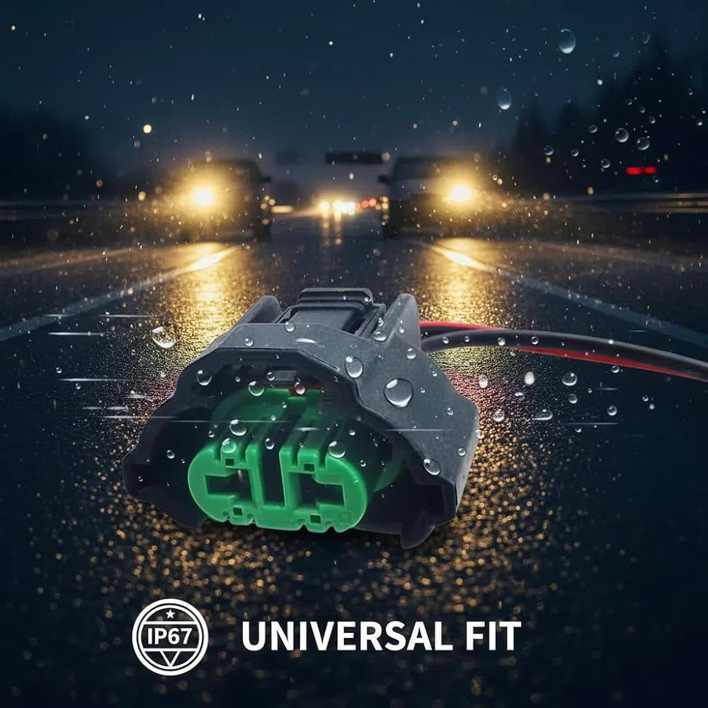 Premium Materials: The socket connector is made of nylon plastic with high-conductivity copper wire encased in a silicone insulating tube. It boasts excellent heat resistance and abrasion resistance, ensuring long-lasting and stable operation. A robust plastic cap forms a tight seal at the plug connection, effectively preventing moisture buildup and fogging. Provides a reliable connection for your vehicle's fog lights.
