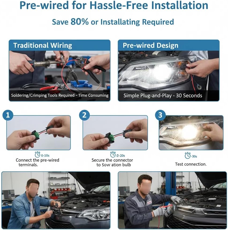 Package Contents: This package includes two bulb socket connectors, allowing you to replace the connectors on both the left and right sides simultaneously for everyday use. Convenient and durable, they can be stored in the garage for future maintenance or to handle unexpected light malfunctions, saving you time and effort.