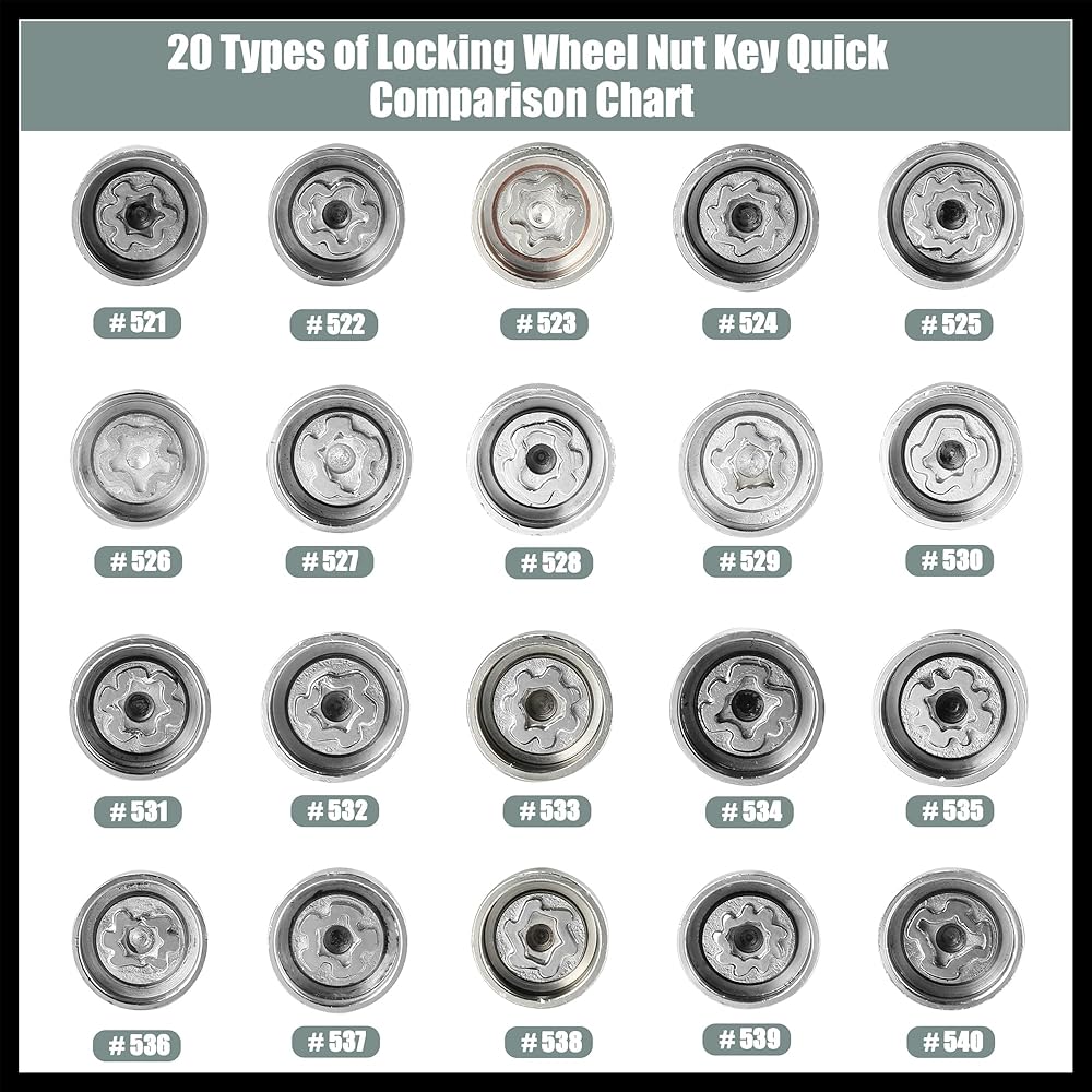 To save your time, please carefully check and compare the shapes and marks of wheel lock keys pictured before purchase.
