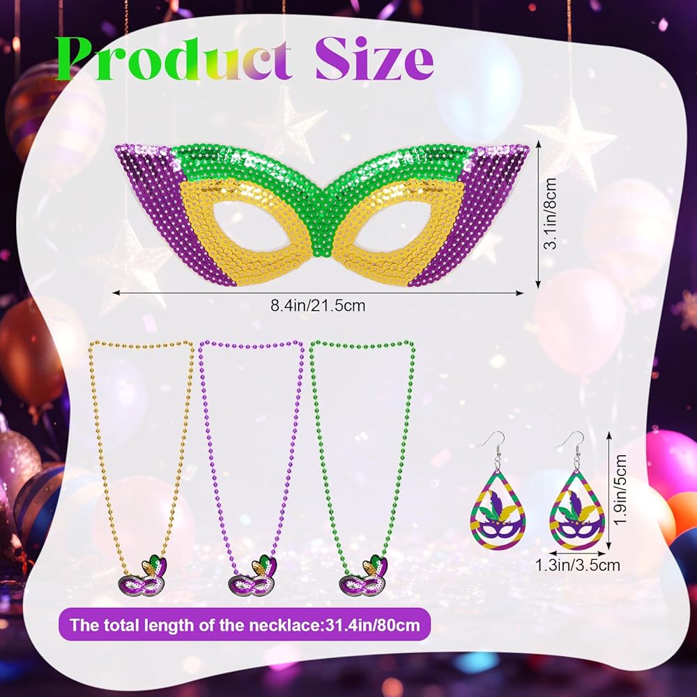 -- The set includes three lightweight 31.4in bead necklaces and matching earrings that layer effortlessly, adding classic Mardi Gras charm US buyers expect for themed nights, group costumes, parade teams, and fun social media photos.