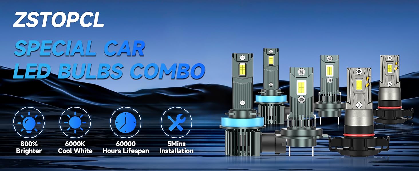 【Upgraded 800% Brightness】ZSTOPCL latest bulb adopts a double-sided 16pcs CSP chips design, with a full light pattern and no black spots. It can emit 44000LM, which is 800% brighter than the original car halogen lamp, making your night driving vision clearer and enjoying the fun of night driving