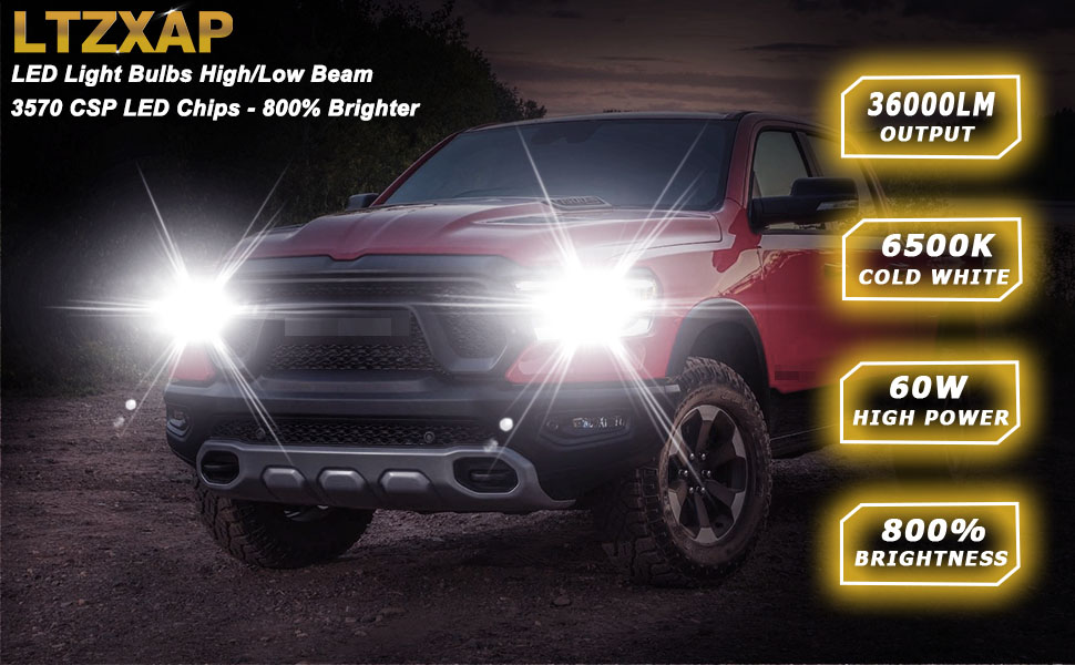 👍[800% Brightness, Energy Saving]: For Dodge Ram 1999-2001 light bulbs features the latest high-performance 3570 chip, built-in intelligent IC driver, 36000LM, 6500K cold white temperature, providing up to 8x brightness, and the light source can save up to 80% energy compared to traditional light bulbs, let you see the signs and animals on the road more clearly, enjoy a brighter drive instantly