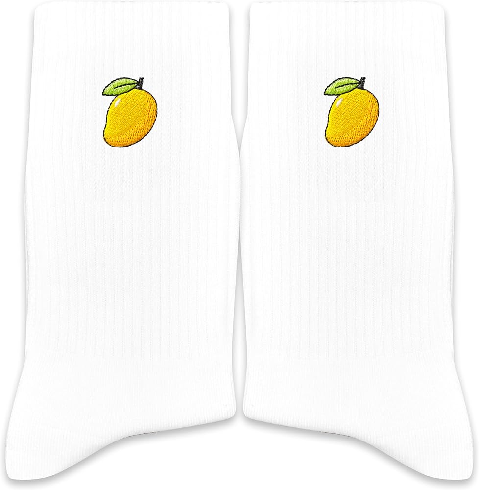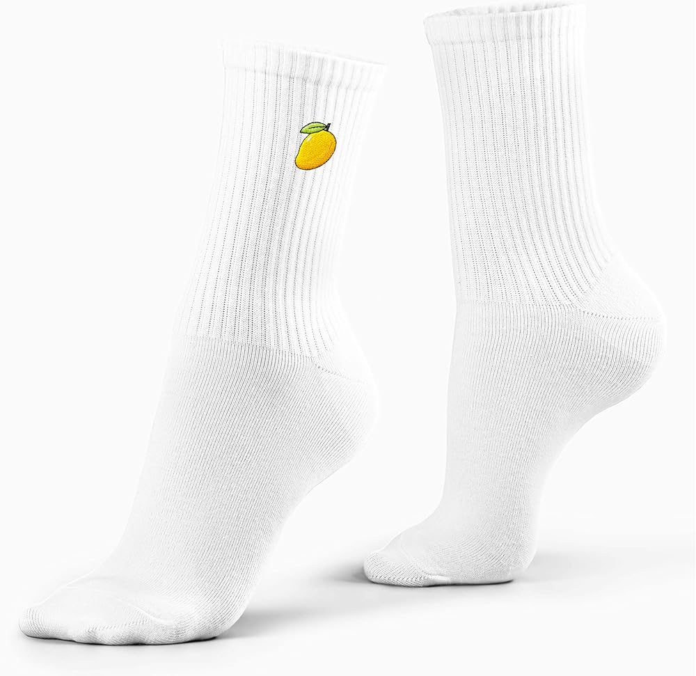 Mango embroidery detail: Small mango stitched on each sock adds a bright, tropical accent for mango fans, summer outfit lovers, and people who enjoy fruit-themed accessories.