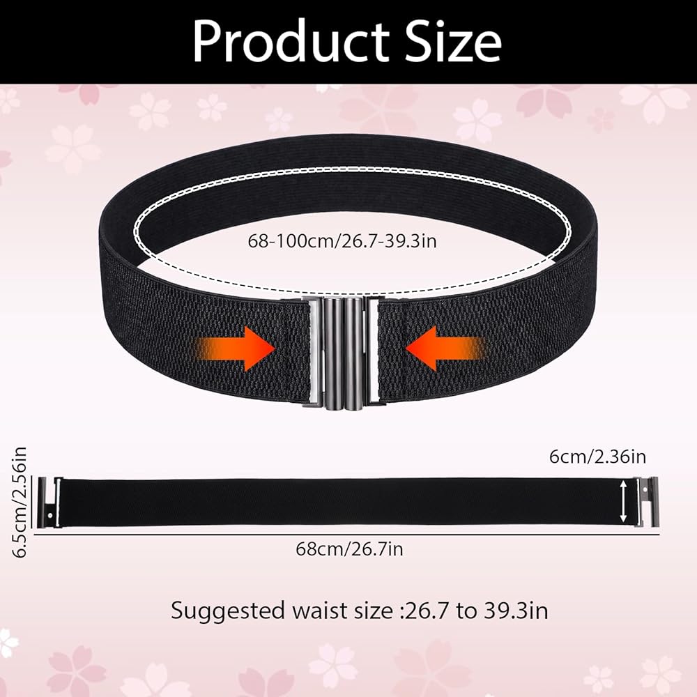 Perfect Size for Most: With a total length of 72cm (28.3 inches), elastic band width of 5cm (2 inches), and buckle width of 5.5cm (2.2 inches), this wide elastic belt fits waist sizes from 26.7 to 39 inches. It's designed to cinch your waist attractively, highlighting your figure for various occasions.