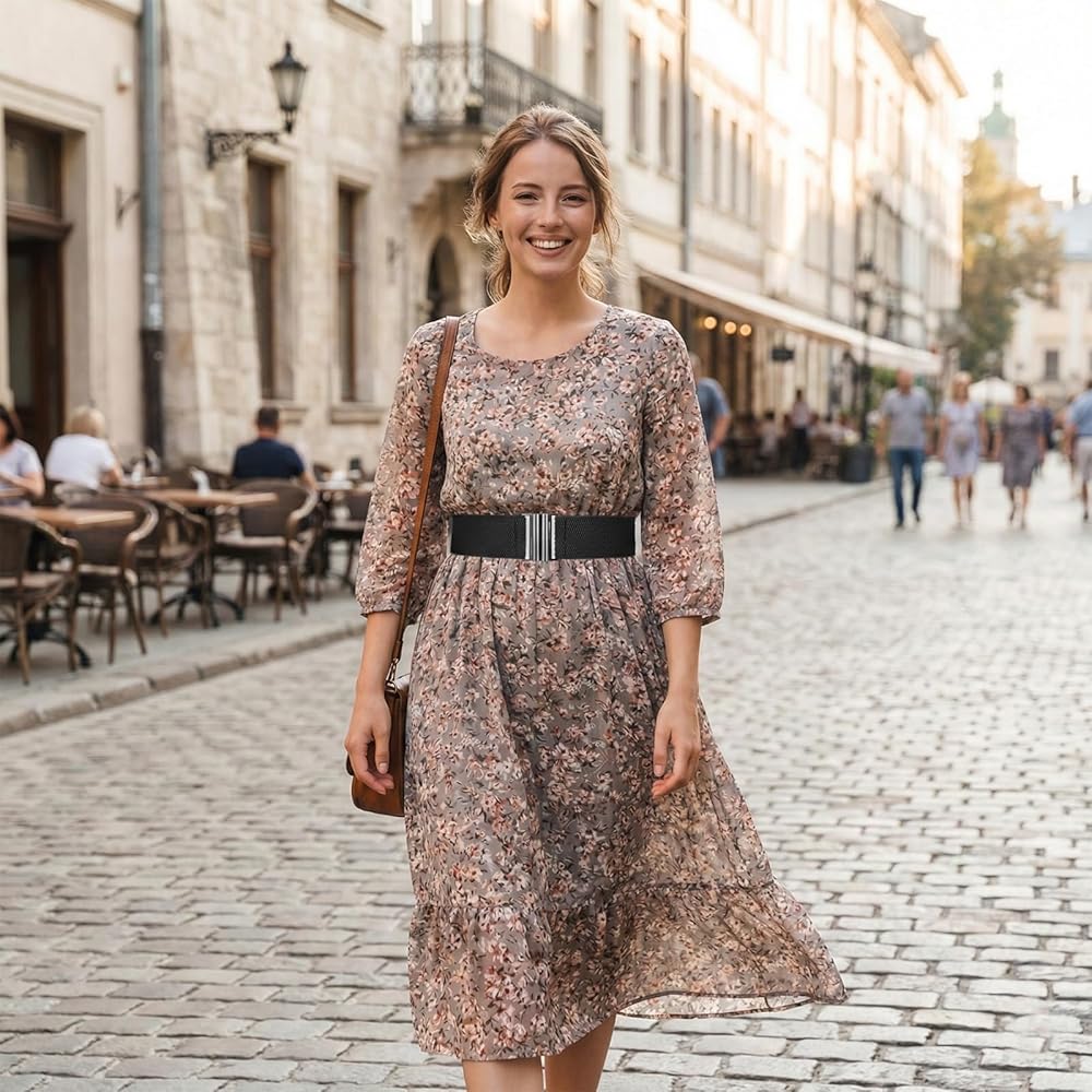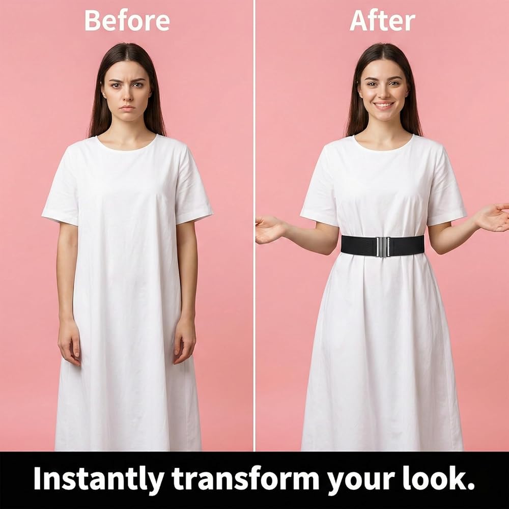 Effortless Style Match: This elastic belts for women stretch features a sleek zinc alloy buckle, making it a versatile accessory to elevate dresses, skirts, tunics, blouses, and more. Its classic design adds a touch of sophistication to any outfit, perfect for year-round fashion.
