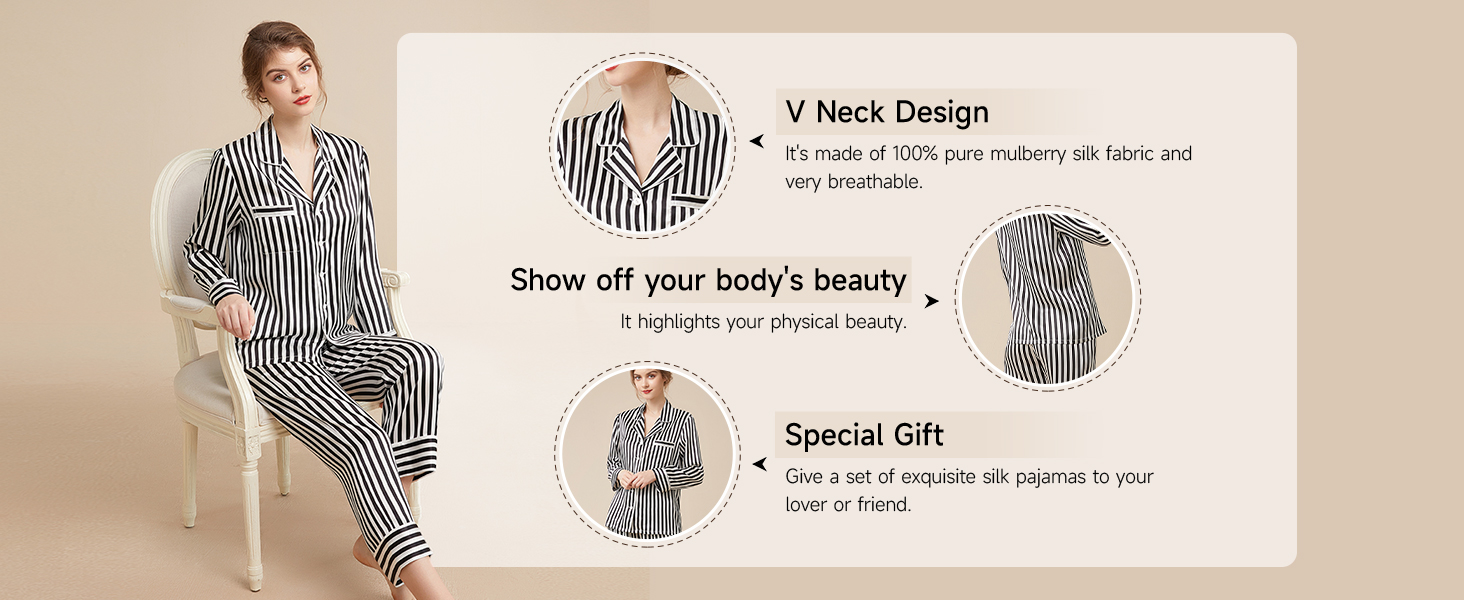 EASY CARE & DURABLE: The silk pajama set is machine washable. Machine wash on a gentle cycle in cold water and air dry. 6A grade silk pajamas lasts many years with proper care.