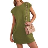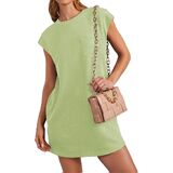 This cap sleeve dress short women combines lightweight fabric with a breezy fit. It's perfect for staying cool while looking fashionable during warm weather outings. Fashion Length: With above the knee-length hem, basic mini shift dress easy to dress up and down, this outfit is a great first choice for going out. Also providing a comfortable and stylish option for any occasion. such as casual wear, shopping, dating, beach, school, work etc. This short dresses strikes a balance between formal and casual. The tunic Dress Women short creates a flattering silhouette, perfect for any body type, making every woman look effortlessly chic and feminine. This casual dresses for women allow for easy layering with other wardrobe items, providing an extra addition of fashion and style to ladies closet. Size S(4-6):Bust:37.8", Length:33.07" Shoulder:16.73", Waist:36.22" Size M(8-10):Bust:40.16", Length:33.66", Shoulder:17.91", Waist:38.58" Size L(12-14):Bust:42.52", Length:34.25", Shoulder:19.09", Waist:40.94" Size XL(16-18):Bust:45.67", Length:35.04", Shoulder:20.67", Waist:44.09" Size XXL(20-22):Bust:48.82", Length:35.83", Shoulder:22.24", Waist:47.24"