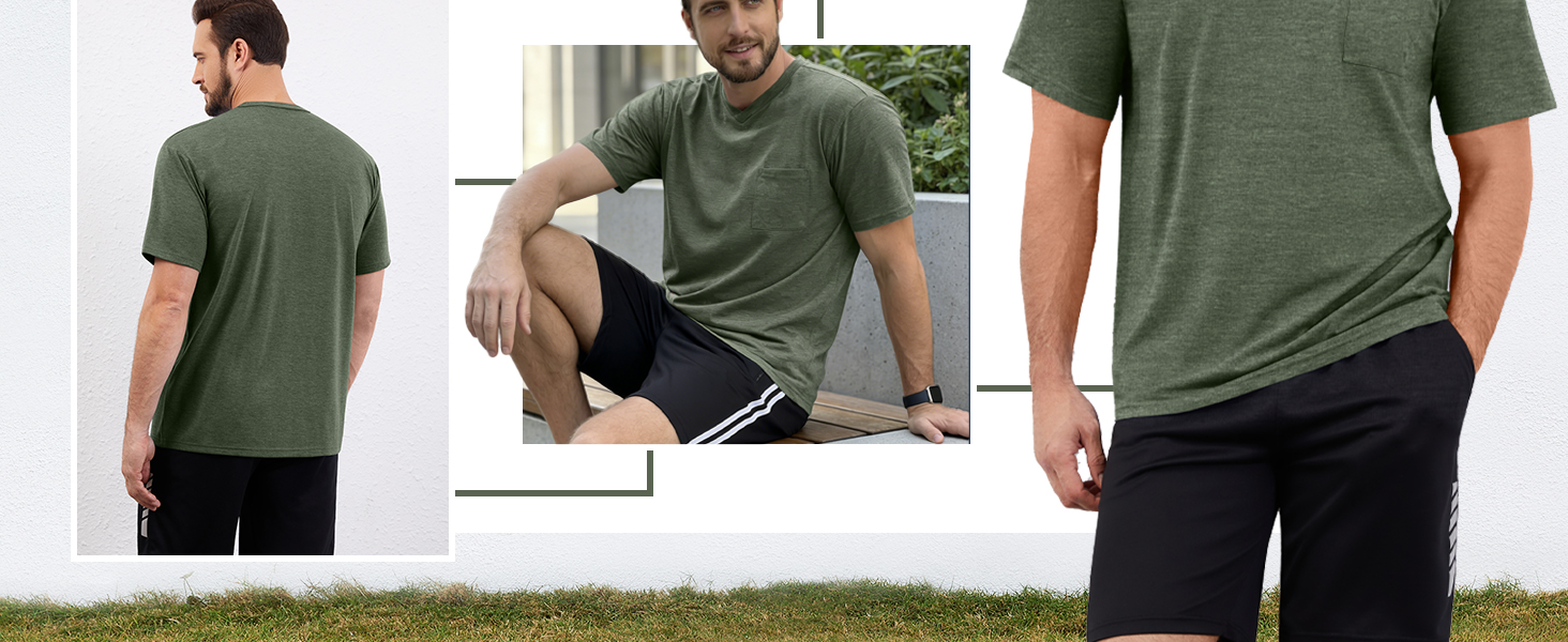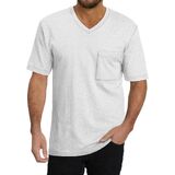 FEATURES: Men's soft t-shirts with v neck, short sleeve, front pocket, durable design and stitching made to last. A variety of color combinations create a modern and effortless fashion.