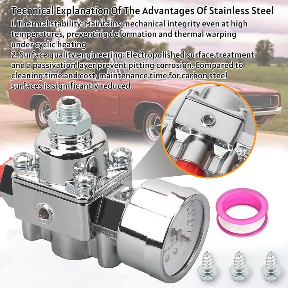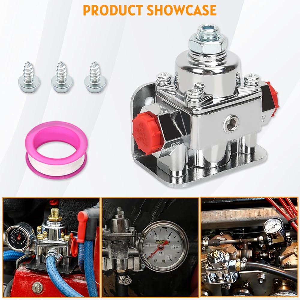 Effective Fuel Pressure Regulation: Regulates fuel pressure from 1-4/2-9 PSI with a 7/32 inch restriction to prevent overloading valve needles and pressure, avoiding overflows and drivability issues; adjustable based on your carburetor and vehicle application