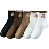 5 Pairs of crew socks for women with bear design
