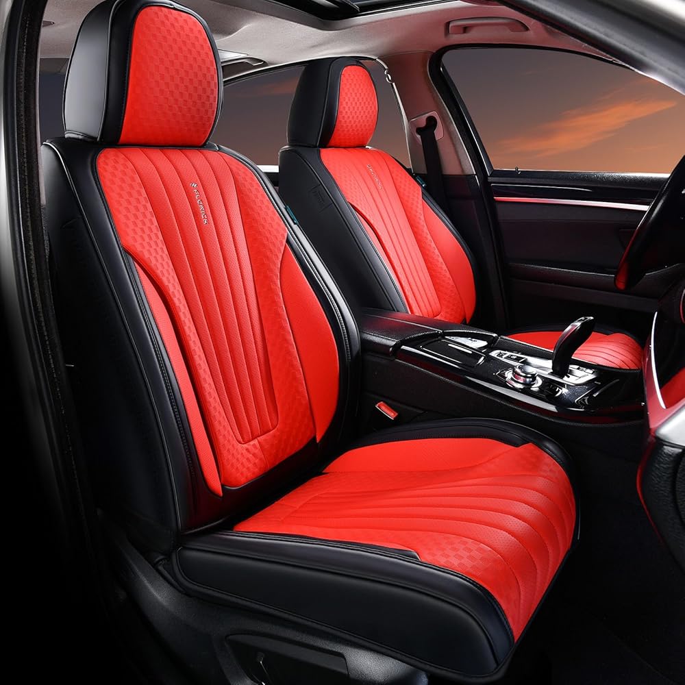 High-Quality Breathable Leather: Crafted from premium leatherette, these FLORICH front seat covers offer a luxurious look and feel similar to genuine leather. The material is durable, resistant to wear and tear, ensuring long-lasting use for your car seats.