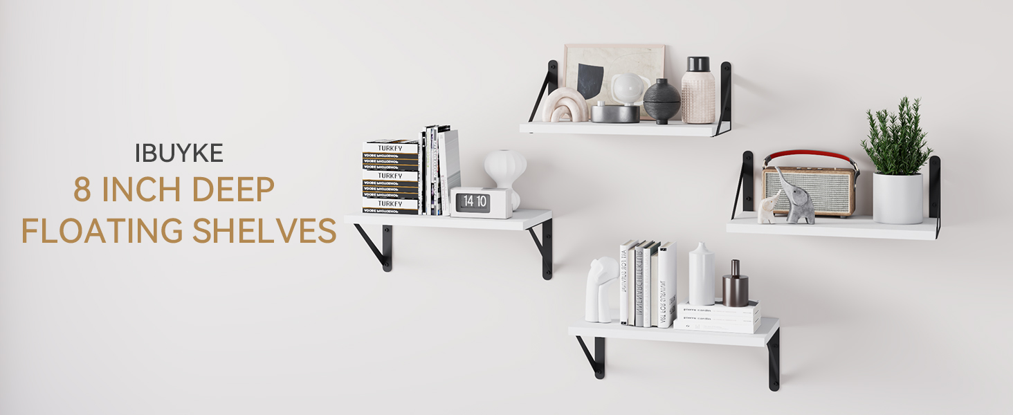 Deep Floating Rack: This deeper and wider wall rack has a depth of 8 inches and a length of 16 inches. It is made of high-quality particleboard and triangular metal brackets, providing sturdy and stable support, and comes in 4 colors to choose from.