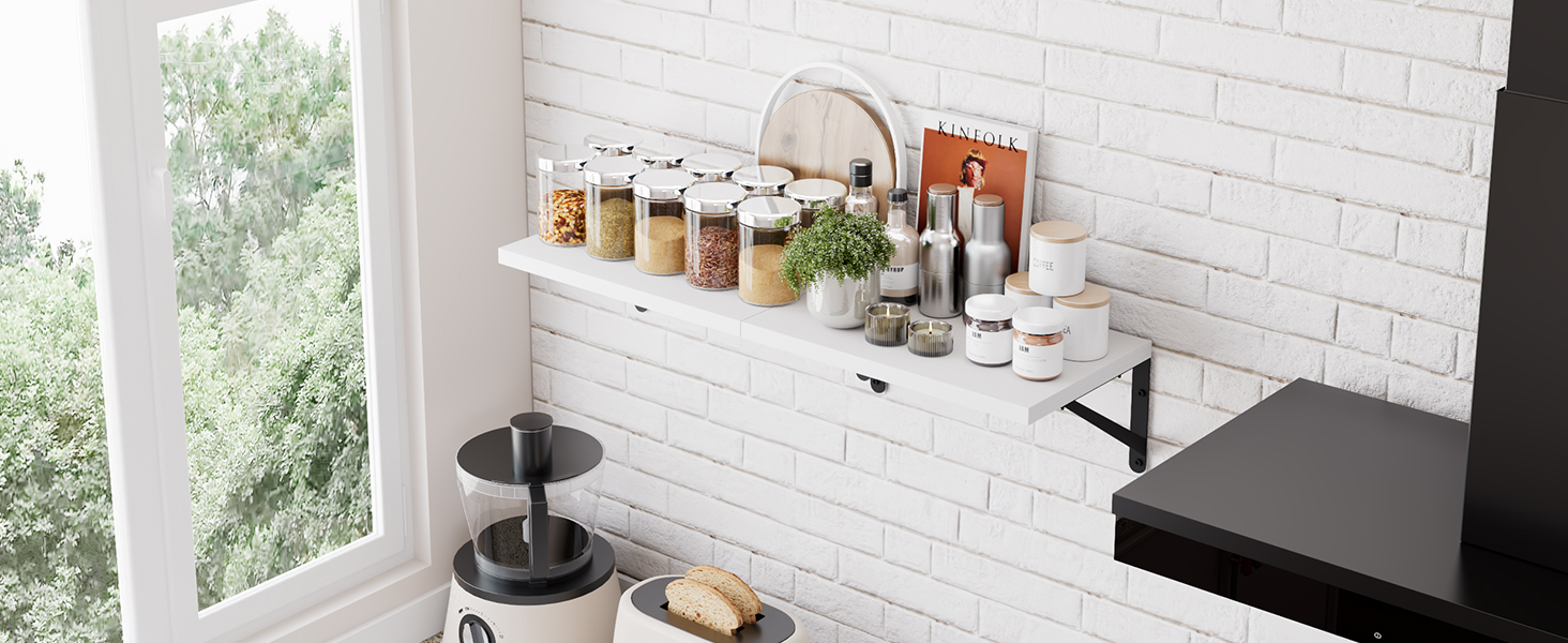 Two installation methods: The bracket can be installed above or below the board according to space and purpose. Even they can seamlessly connect multiple shelves to form a longer shelf for greater space.