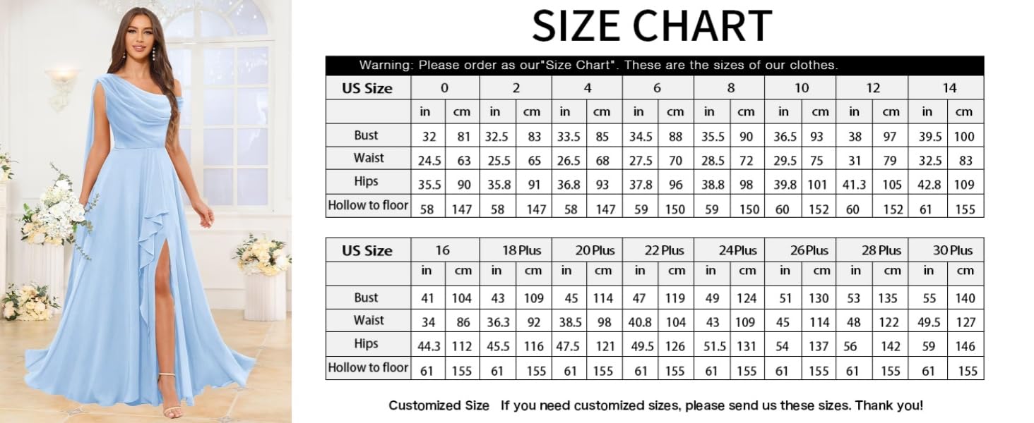 Size Selection: Please check our size chart in the product images for the perfect fit. Do not refer to the Amazon size chart. This chiffon formal dress is designed to beautifully accommodate various body types.