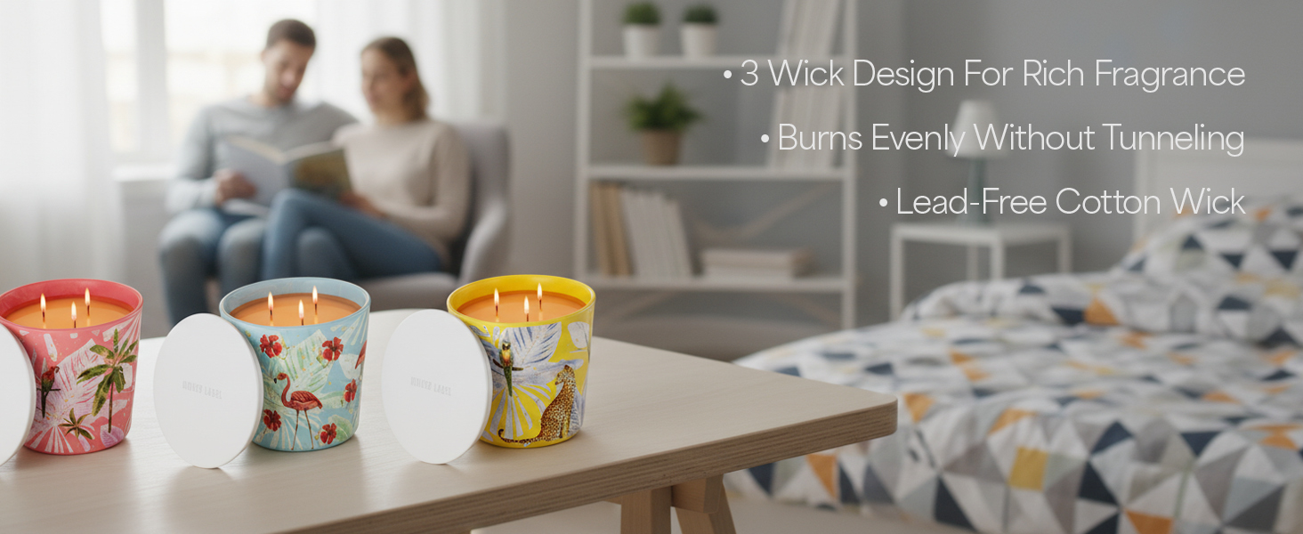100-Hour Triple Wick Performance:Experience up to 100 hours of consistent fragrance diffusion with our engineered three-cotton-wick system. The wide 30oz vessel ensures a complete wax pool melt within 90 minutes, effectively scenting open spaces up to 500 sq ft—ideal for kitchens, great rooms, and home offices without frequent replacement