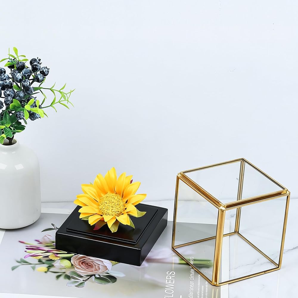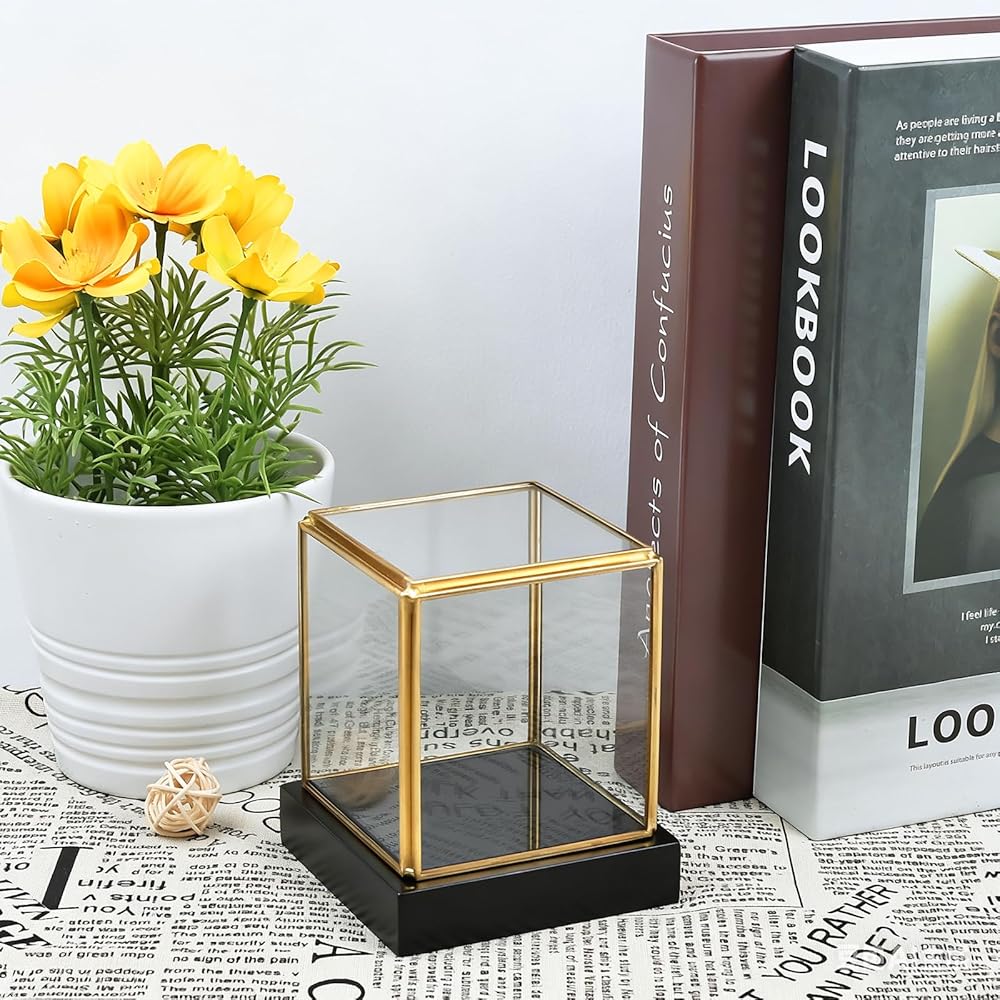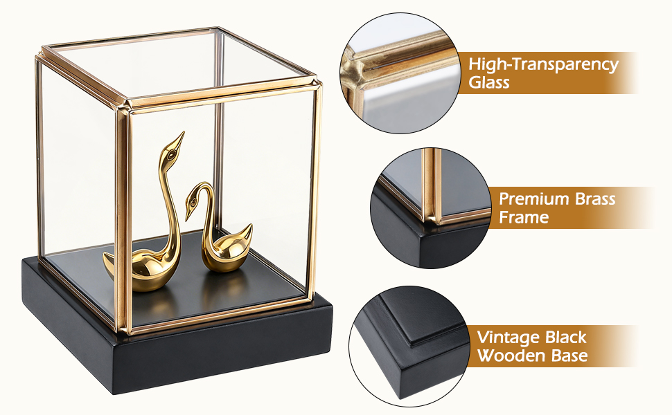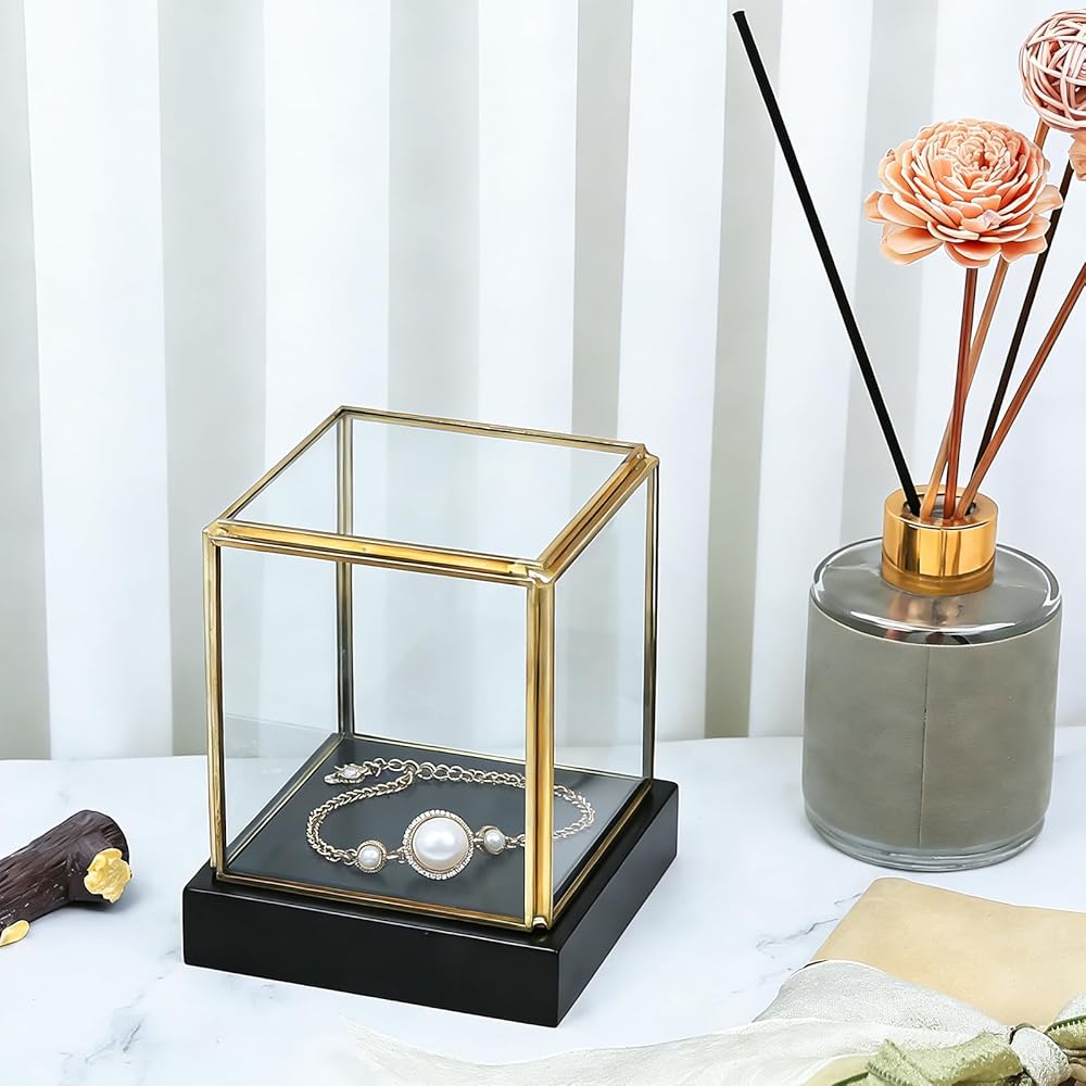 Premium Quality Materials: Crafted with high-transparency glass, the clear glass keepsake box features a frame made of high-quality brass with a luxurious gold finish. The black wooden base adds a touch of vintage elegance, making the entire display case look sophisticated and visually beautiful.