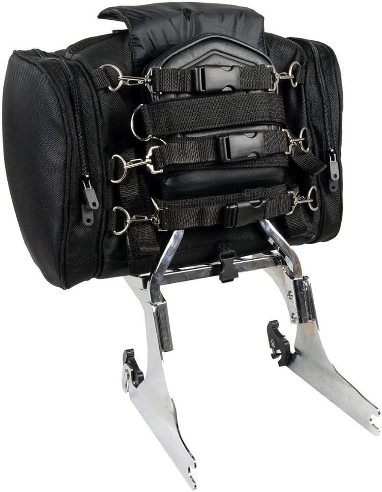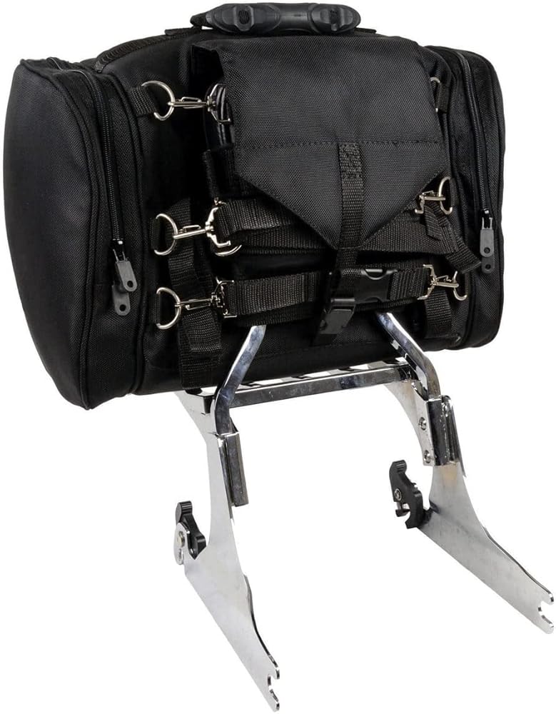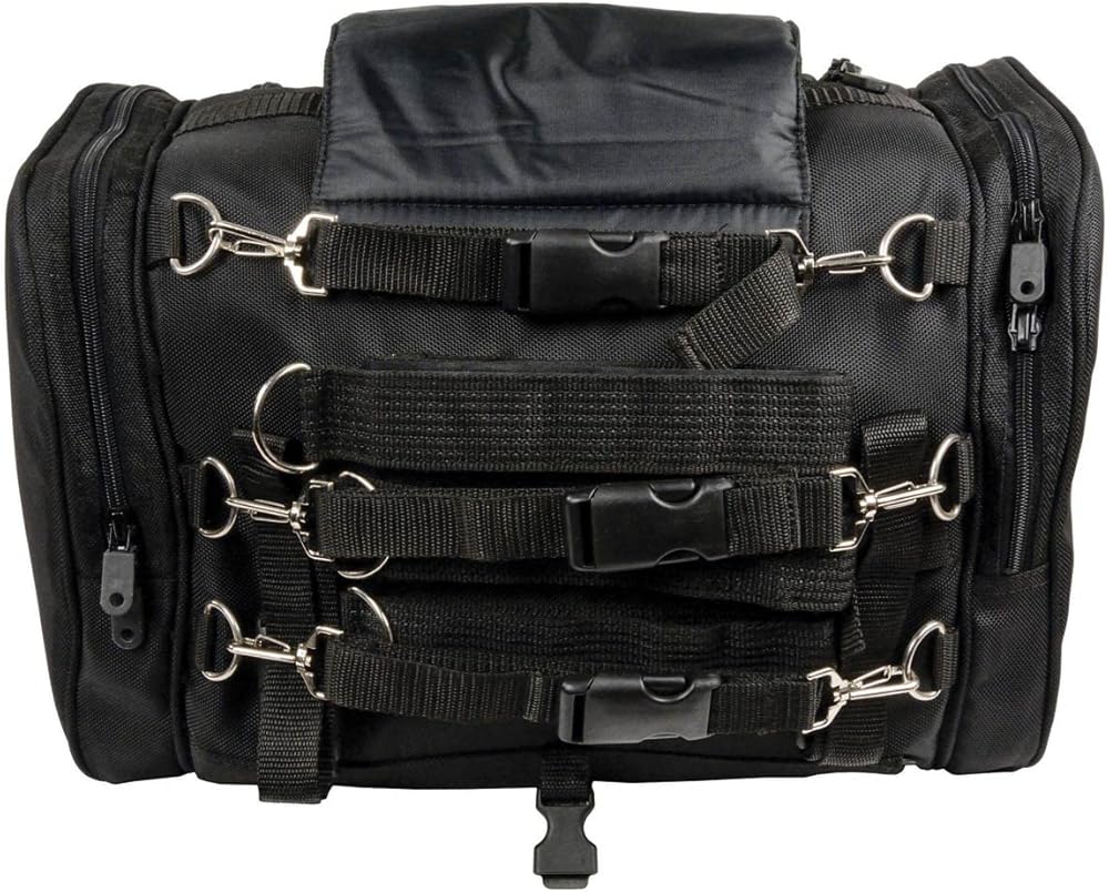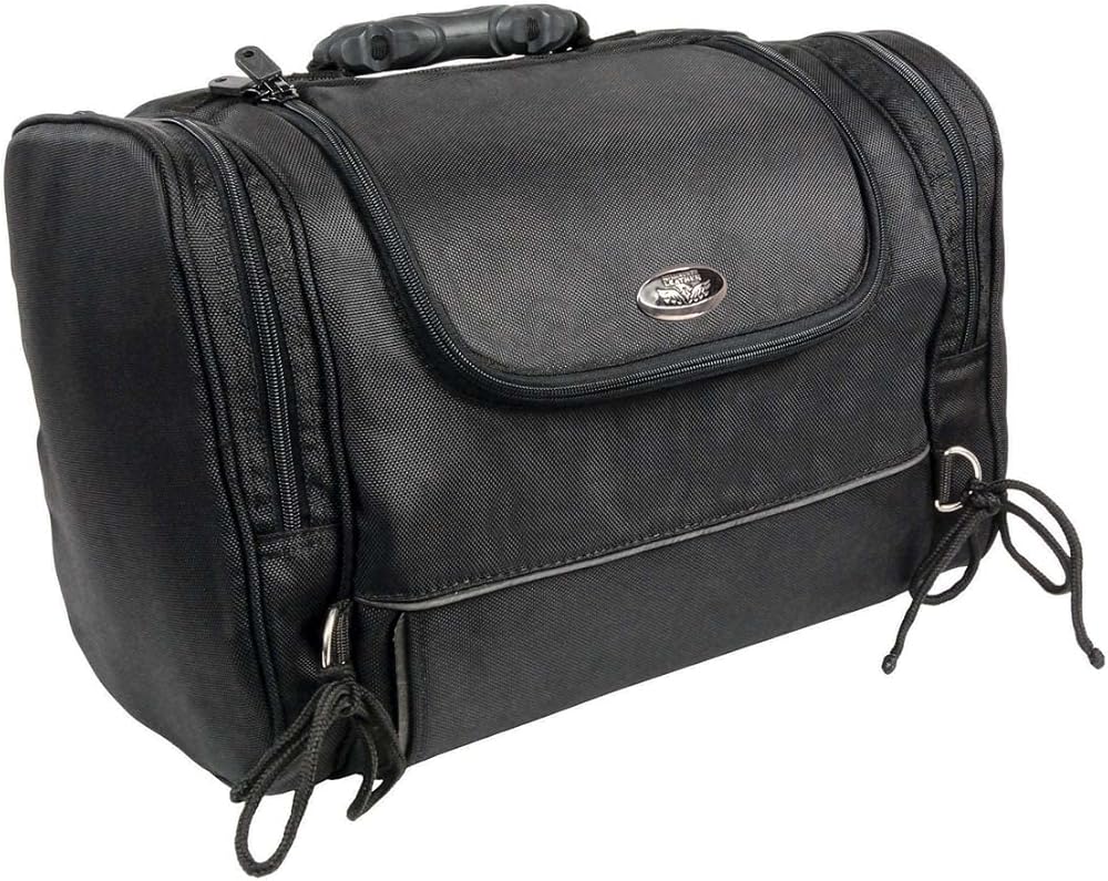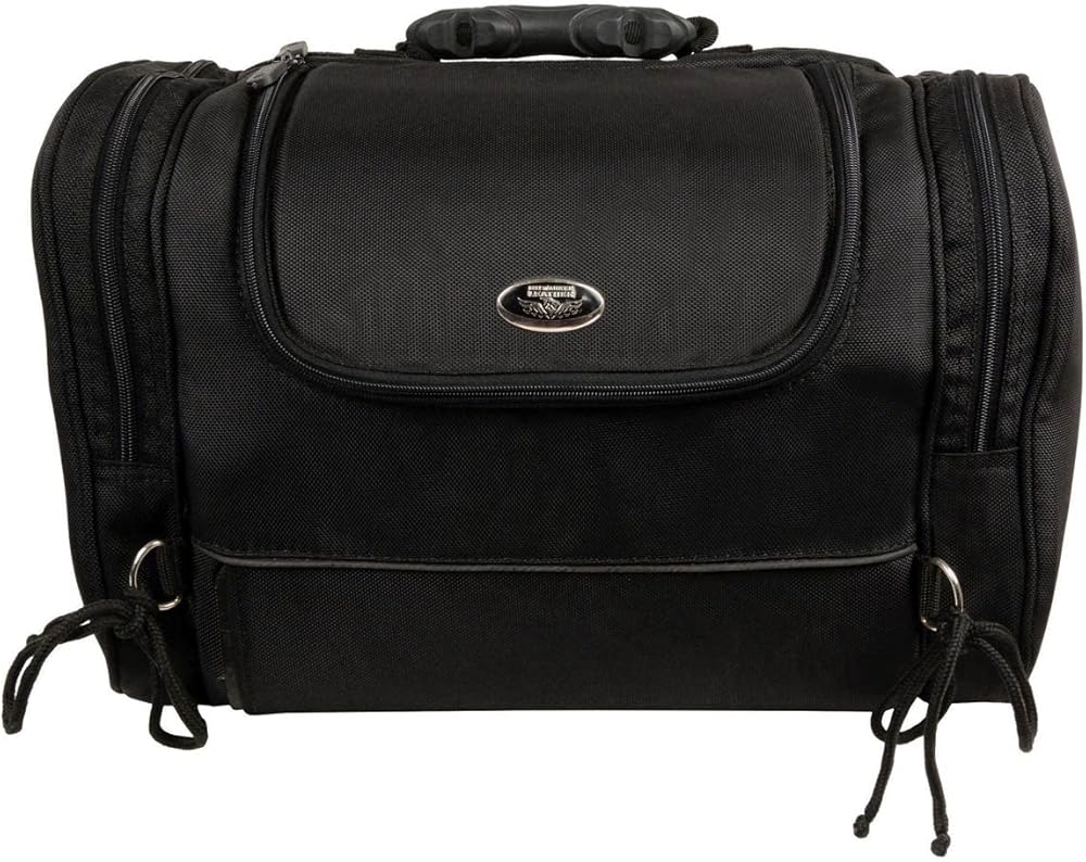 Milwaukee Performance SH684 Medium Black Textile Motorcycle Sissy Bar Bag with Reflective Piping