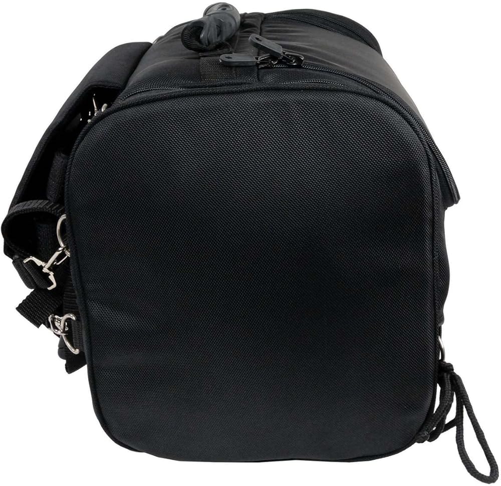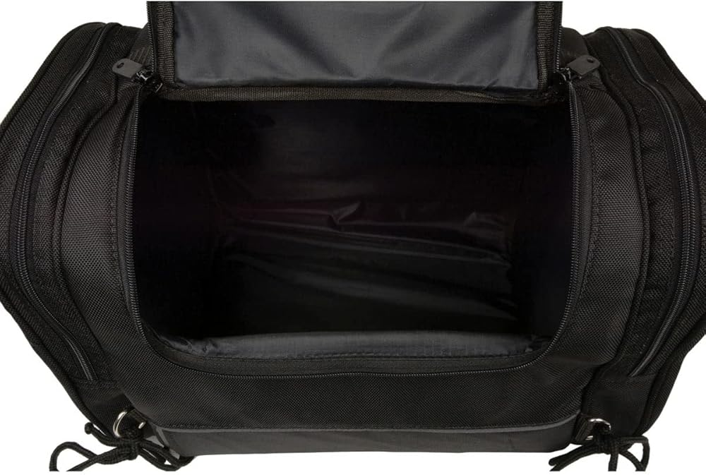 Features Made of 1200D Textile Weather Resistant Material Universal Back Mounting Straps and Buckles Large Main Compartment Access Zipper Easy Carry Luggage Handle for On The Go Day and Night Reflective Piping for Safety Adjustable Hook and Loop Straps Universal Adjustable Straps with Clips Rain Cover Included Bag Dimensions: 16in Length x 11.5in Height x 10in Depth Safety Warning