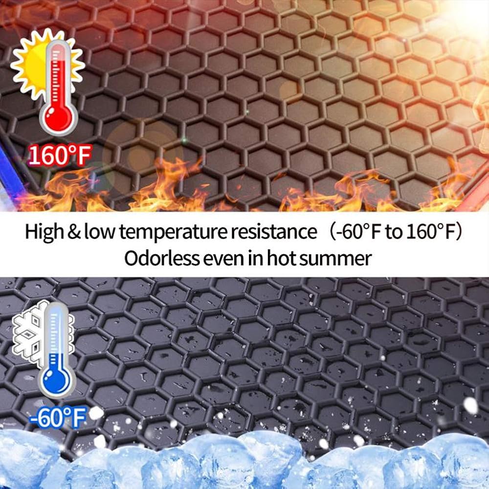 • All-weather Protection Car Floor Liners: The product is made from odorless rubber and is designed to prevent the deformation of high temperature or low temperature. The surface is like a tire pattern design, which can enhance the anti slip function.