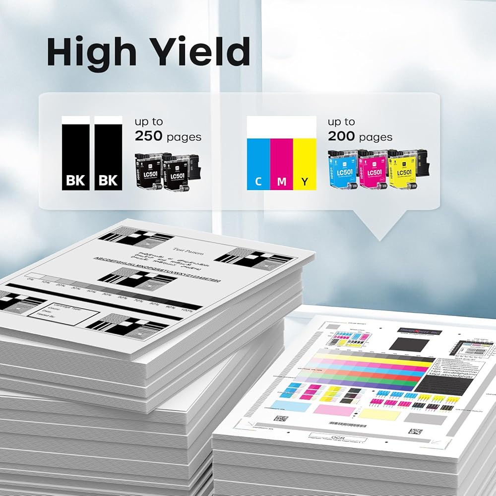 Reliable Quality: Our Compatible LC501 Ink Cartridges for Brother Printer provide reliable printing performance, deliver clear text and vivid images, providing seamless printing