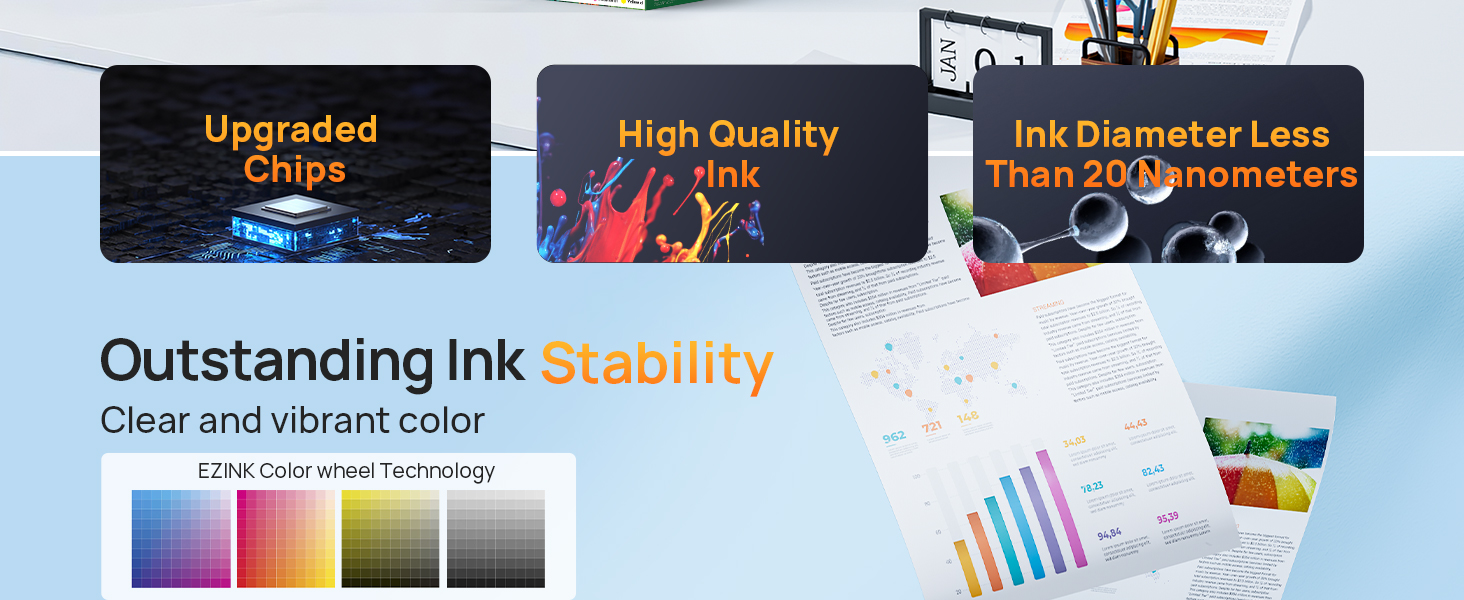 Excellent Performance: E-Z Ink 936XL 936e Ink Cartridges for HP 936 ink cartridges 4 pack high yield features high-quality smart chips designed for stability and reliability. These smart chips precisely monitor ink levels, accurately display remaining ink, and support seamless plug-and-play functionality—ensuring a smooth and hassle-free printing experience.