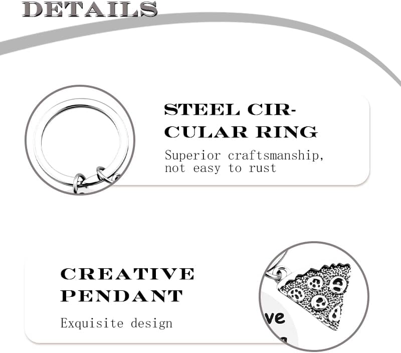 Widely Use Pizza Keychain Keyring: The pizza fun slogans and warm design make it the perfect valentine's day key ring for couples, as well as a pizza lover gift for birthdays graduation, long distance gifts for friends pizza lovers, and suitable use as pizza staff birthday bday gifts, car house door key organizer, office key holder