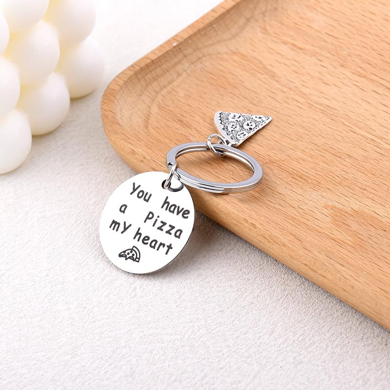 This stainless steel pizza keychain is great way to express your foodie preferences, can use as pizza gifts for women men pizza lovers, pizza staff just because gift, funny engraved words adding a ttouch of playful for you, great anniversary presents for couples him her, long distance gift for him her