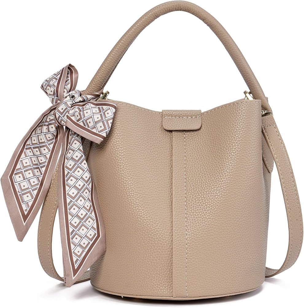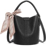 Premium Material & Chic Design: Crafted from premium vegan leather with an elegant silk scarf adornment that drapes gracefully around the bucket bag, ingeniously complementing any outfit to instantly elevate your unique style. The shoulder bag features a secure snap closure and includes a matching small wallet