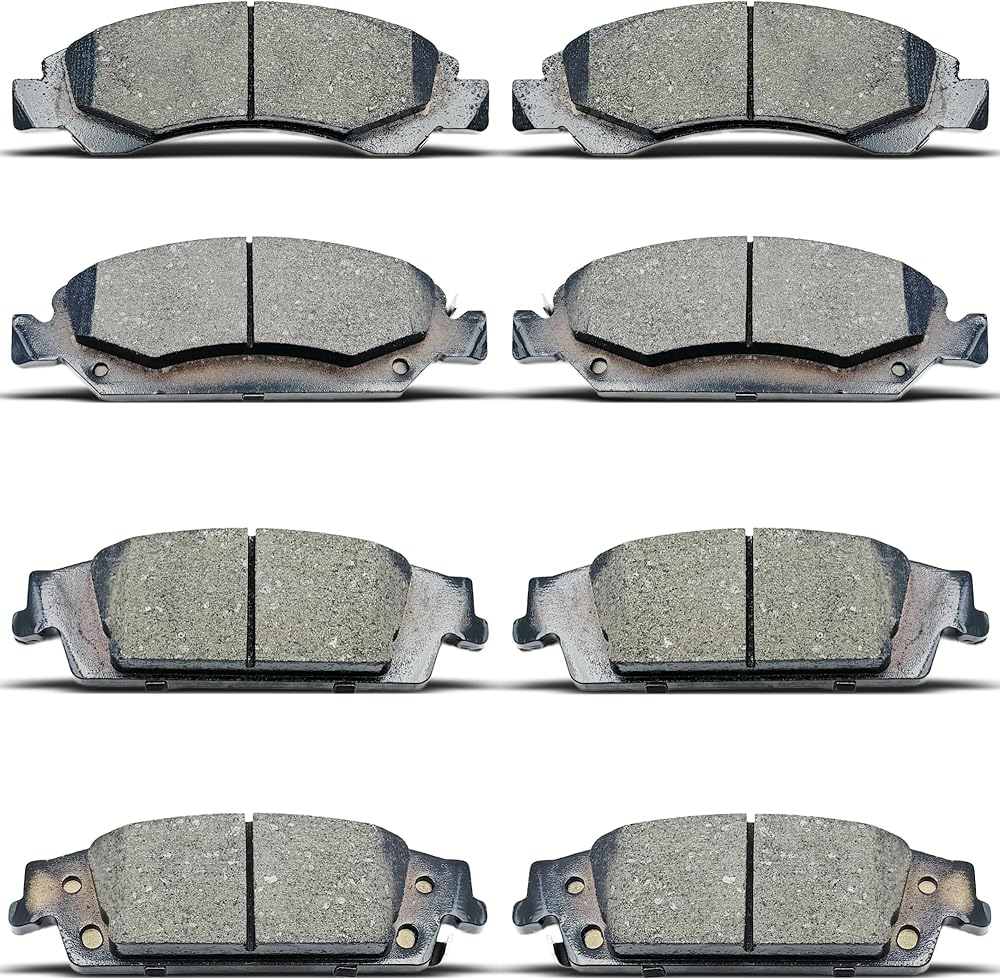 Front Rear Ceramic Brake Pads 8 Pieces Set fit for Cadillac Escalade,Escalade ESV,for Chevy Silverado 1500,Suburban,Tahoe,for GMC Sierra 1500,Yukon,Yukon XL