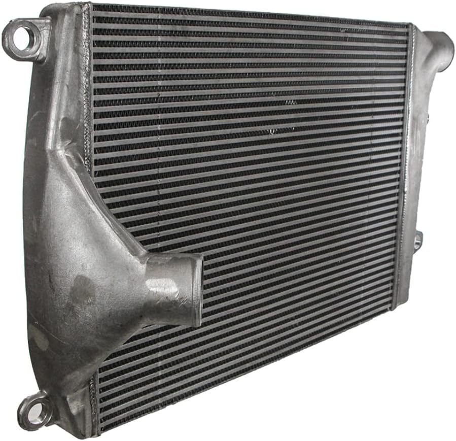 Charge Air Cooler / Aftercooler for Caterpillar D11 33.46” x 26.78” Core *Made in USA* ALWAYS REFERENCE TO YOUR OEM NUMBERS PRIOR TO BUYING! REVIEW ALL PHOTOS AND DIMENSIONS AS THERE MAY BE MULTIPLE VARIATIONS FOR YOUR APPLICATION! INSTALLATION SHOULD BE PERFORMED BY TRAINED PROFESSIONAL! NEW AFTERMARKET MADE TO FIT LISTED APPLICATIONS PART NUMBER: 21377 APPLICATION:Caterpillar FITS:D11 Dozer FEATURES:Formed tubes with internal turbulation to meet OEM performance All aluminum construction Leak tested from the factory Manufactured to meet or exceed OEM specifications CORE (FINNED AREA) DIMENSIONS: 33.46” x 26.78” x 3” INLET: 4” OUTLET: 4” NOTES:Right hand side Reference Part Number 21378 for the left hand side