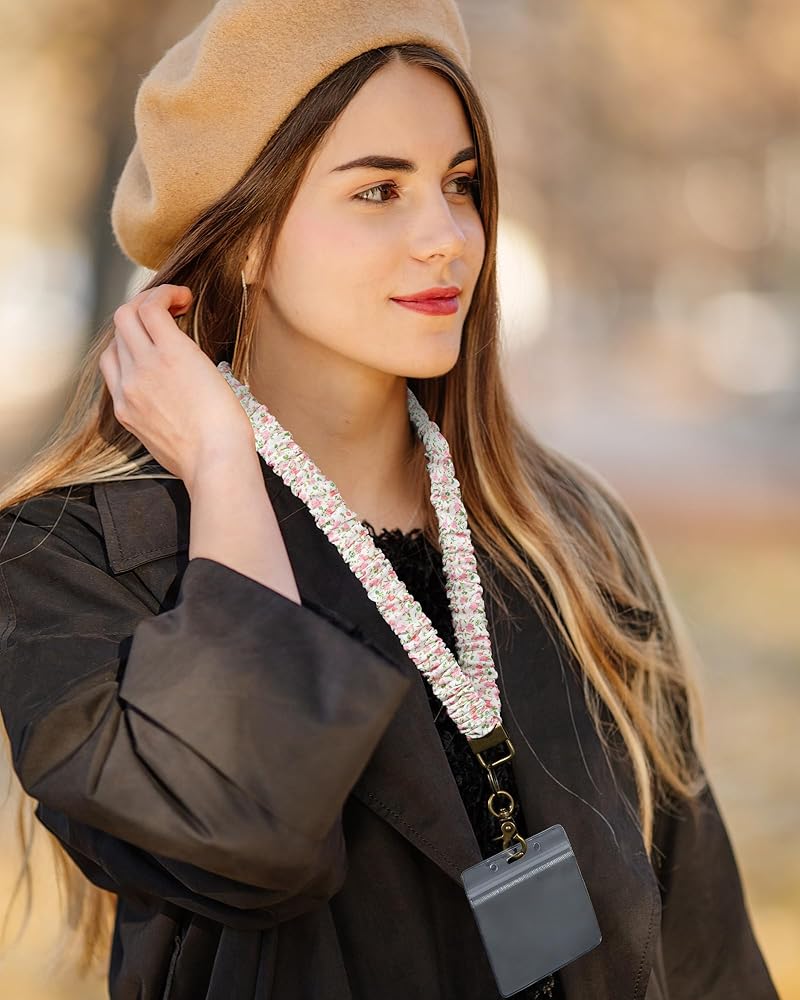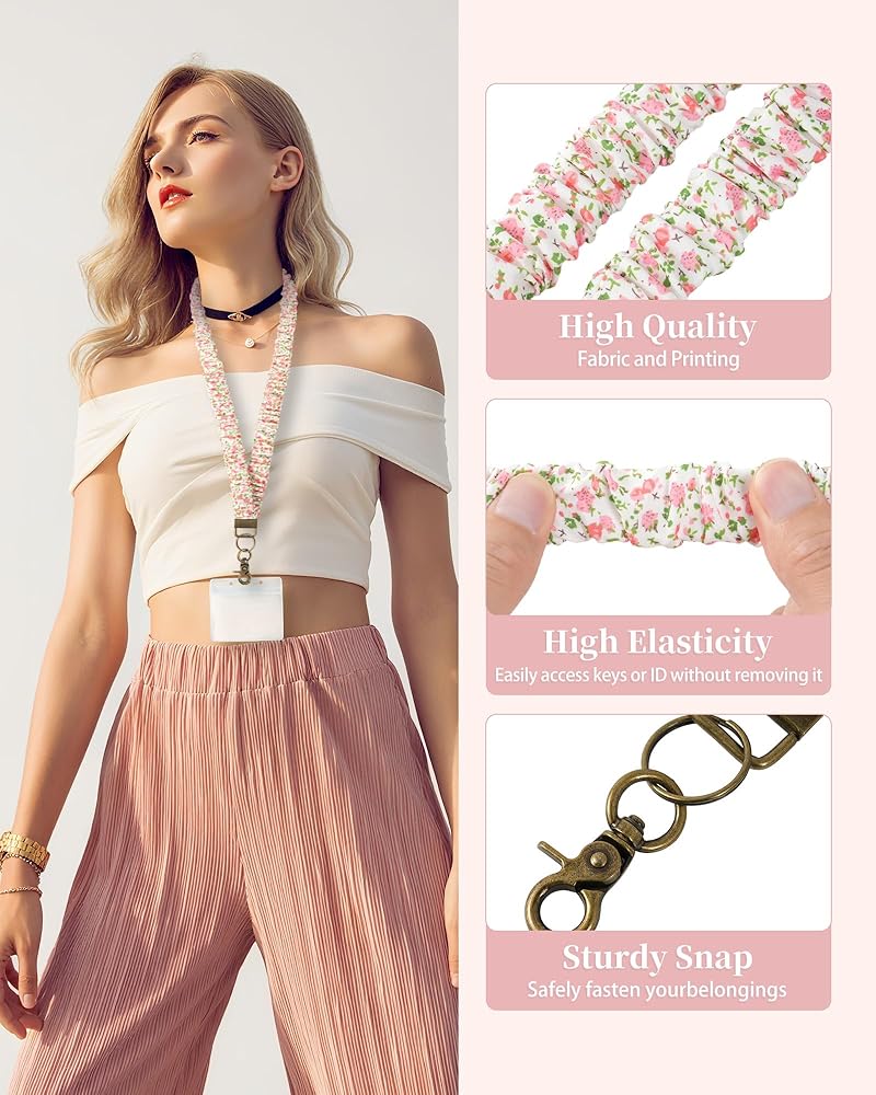 Stretchy & Comfortable Design: Made from soft, elastic fabric, these scrunchie lanyards are gentle on the neck for all-day wear. The stretchy material allows easy access to IDs or keys without removing the lanyard—ideal as a neck keychain for women and girls