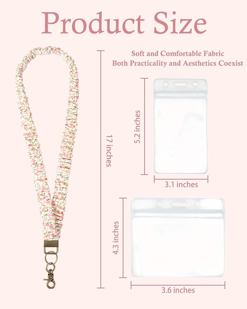 2 Scrunchie Lanyards + 4 ID Holders Bundle: This set includes 2 stretchy scrunchie lanyards and 4 ID badge holders (2 sizes: 100×85mm and 115×70mm, 2 of each). Perfect for teachers, students, or professionals needing a cute lanyard with functional storage