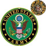 USA Army Round Emblem Easy to Hang:United States Army Emblem Sign Is Made Of Higt Quality Metal And Comes With Pre-Drilled Holes For Easy Hanging. The Edges Of us army Logo Are Rolled And Hemmed For Safe Handling